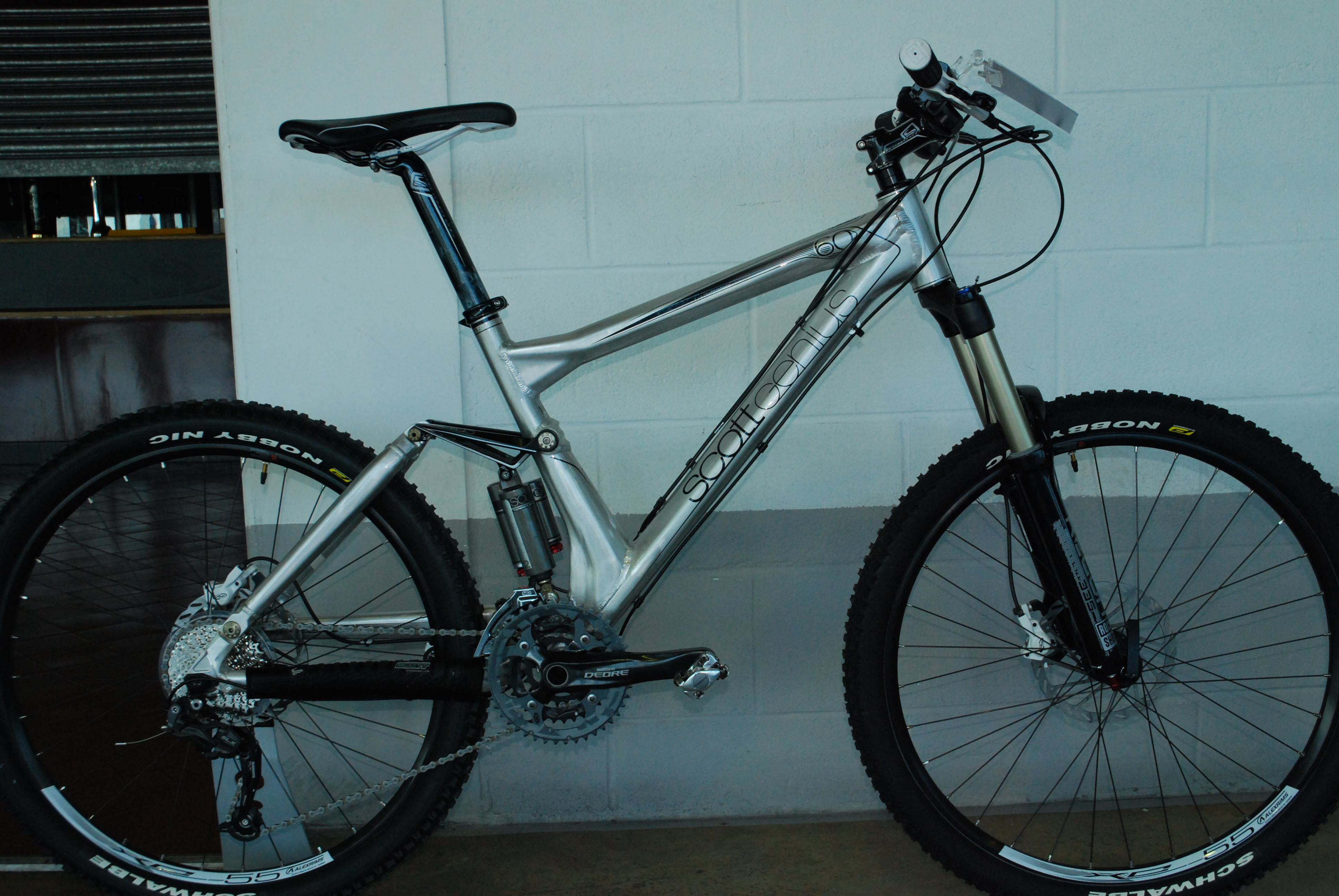 The Voltage is a new model for Scott. Here’s the entry level FR 30 version. 130-180mm travel at the back. About 36lbs.