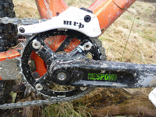 The Race Face Respond cranks have spacers which allow 6mm of chainline adjustment and this has been great for fine tuning the position of the 34 tooth MRP chainring in the MRP 1.X Guide. I have lost the chain a couple of times but only when back pedalling. It is a system that works and keeps weight low but I’d rather have the security of a full chain device. MRP do the Mini G chain device which only weighs 220g although if you are watching every gram then the 1.X at 58g does seem very appealing. Again look out for a future Grinder review of the cranks and the 1.X.