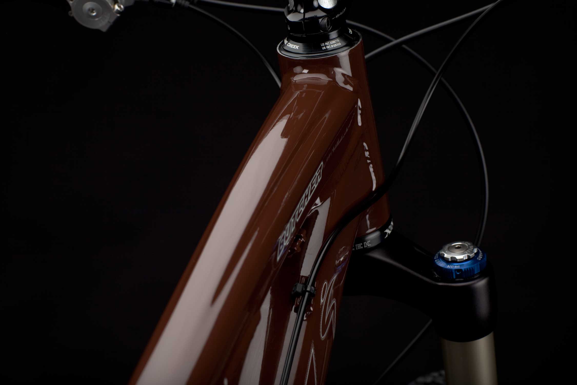 Like the Nickel it features the new APP suspension system and a tapered headtube. It features 150mm rear travel and works best with 140-160mm forks. Angles for the keen are 67.5/72, with a 13.8in static BB height and a 22.5in top tube on a medium. The bike should build into something like 30lbs. There are ISCG5 tabs for chain devices and the like.