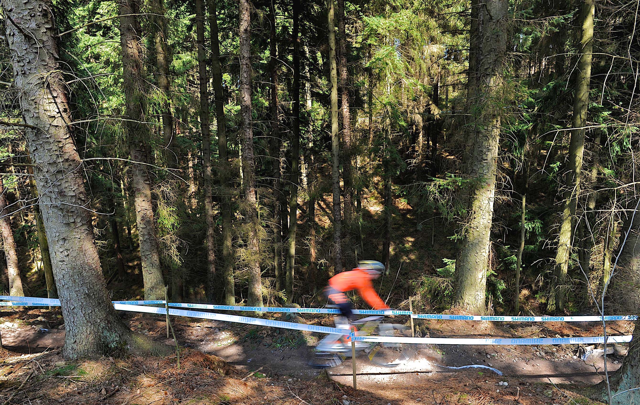 Images above: Top bikers training on the 6.5km World Cup Trail in Dalby today (Thursday). Pictures by Tony Bartholomew.