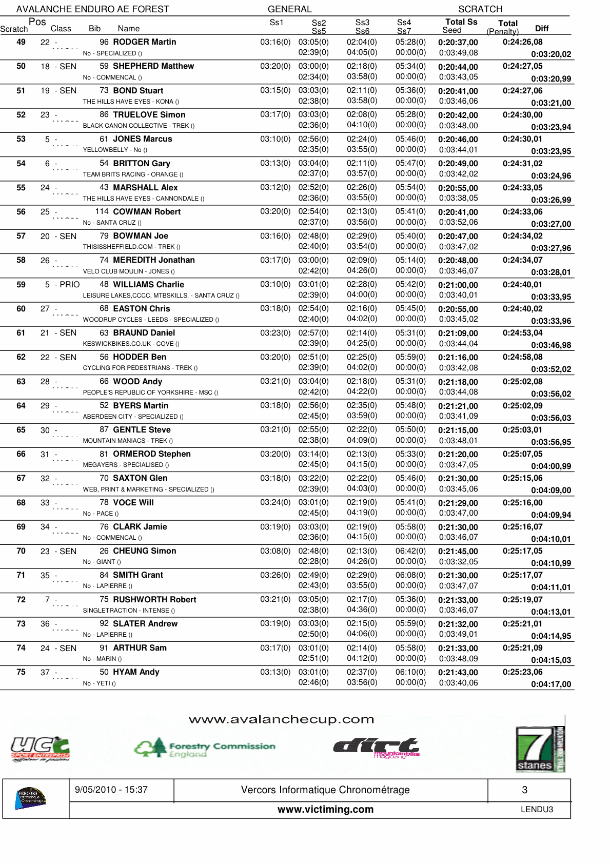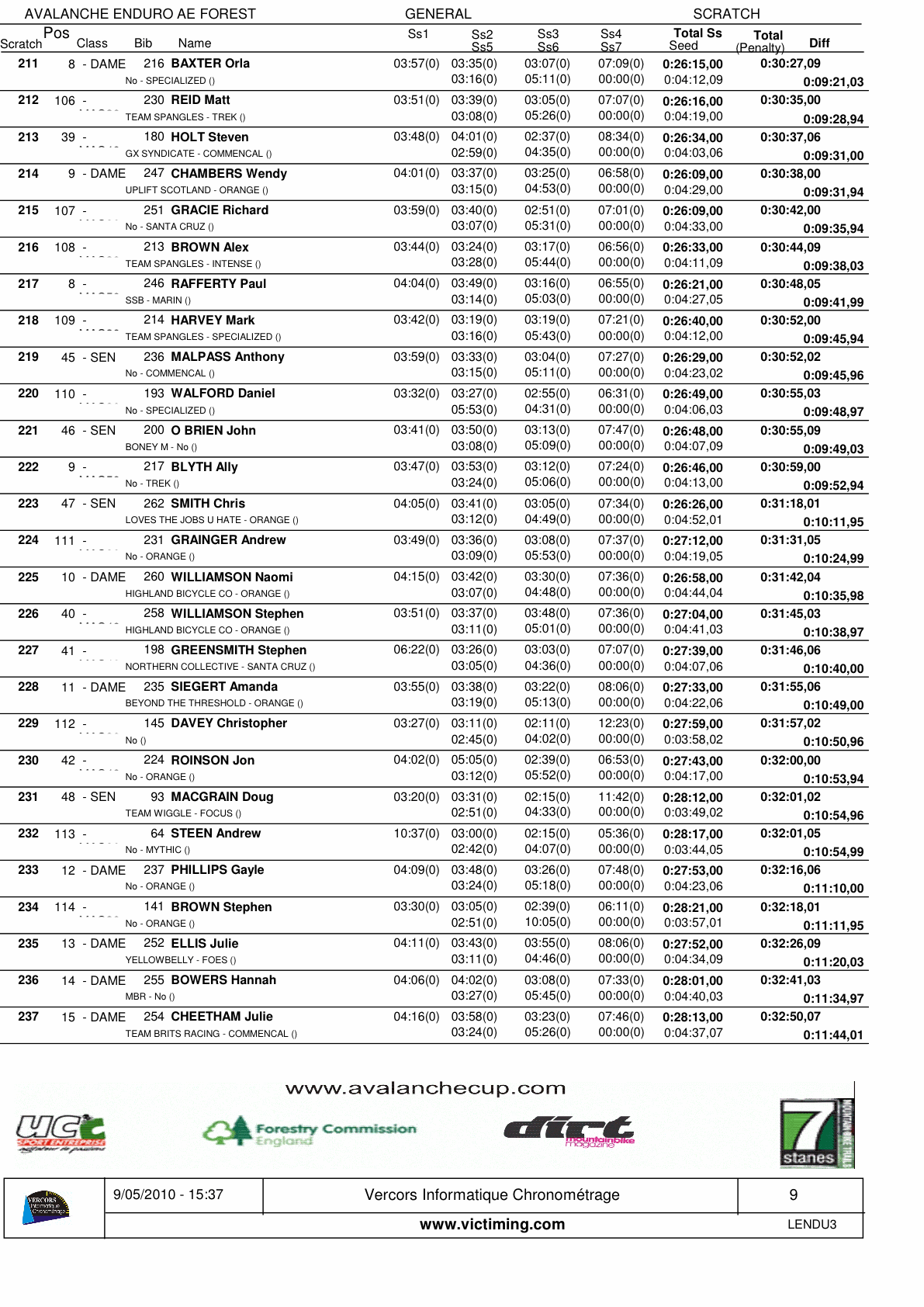 Stage 1: Nicolas VOUILLOZ made the best time in 2min51, second position 2min55 for Glyn O’BRIEN & Rupert FOWLER.