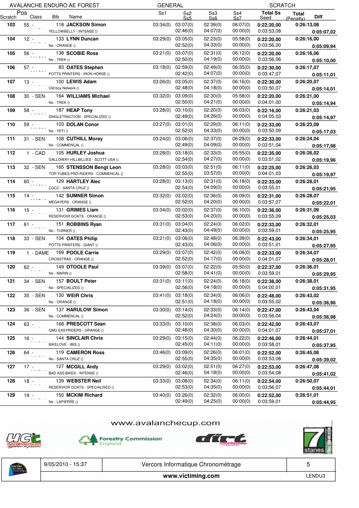 Stage 5: Crawford CARRICK – ANDERSON won in 2min17 and with only a 1sec of difference second place was Nicolas VOUILLOZ.