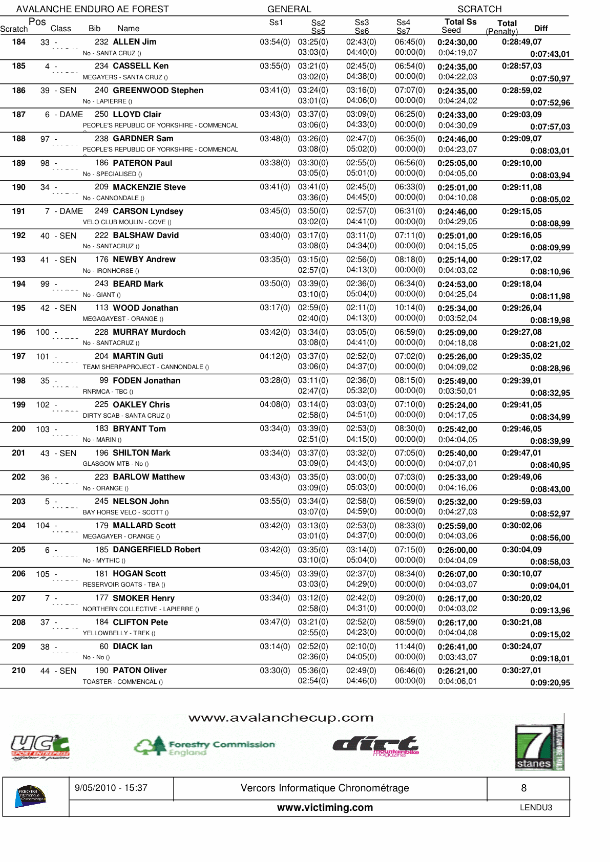 Saturday May 8th: the Seeding Run. The best rider was Glyn O’BRIEN, a surprise result came from Mickael THICKENS who took the second place, he looks in a good shape for the 2010 season. The third place was for Rupert FOWLER. But where was Nicolas VOUILLOZ? 7th position, with almost 7 sec delay for the day after. The Ladies category had about 20 racers and was lead by Carrie POOLE after the Seeding Run.
