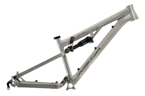 Kevin from Transition Bikes: “For the new Double we added some features in our quest to create the cleanest most solid short travel full suspension bike on the market. Our custom formed tubset designed specifically for our tapered headtube creates an extremely strong and beautiful junction. Combined with internal tube gusseting, the profile of the Double is about flowing clean lines. The design goal was all about smooth edges. There is no pocketing of CNC bits so no where for dirt to hide and it is super easy to clean. The new rocker has gorgeous chamfered edges as well as our new travel adjustment chip for switching between 80mm and 100mm of travel. We finish it off with internal cable routing for the rear derailleur for some of the best cable routing for all you mechanics out there.”