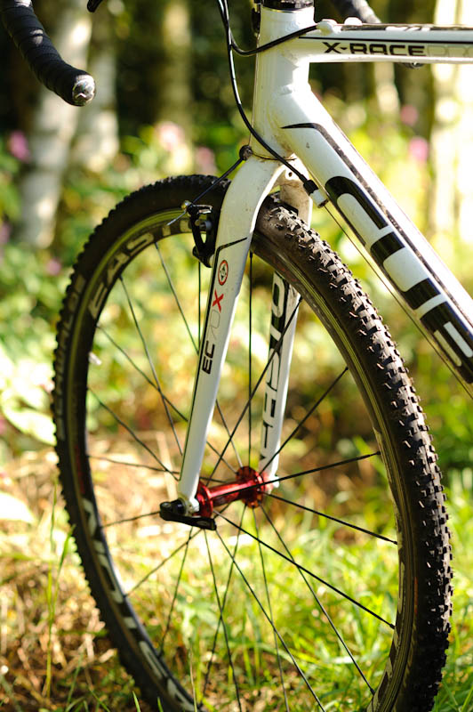 The frame is nice but the amazing thing is the components you get for your money. For a start you get a full Ultegra drivetrain (for those who don’t speak roadie Ultegra is XT level), minus the more ‘cross specific FSA Energy crankset, even the usual suspects of stealth downgrading the chain and cassette are Ultegra. As you’d expect from Shimano it all works flawlessly with the customary smooth transition between gears. The brake callipers are Avid Shortys and provide enough power to slow you down, but I’m assured cross bikes aren’t supposed to have powerful brakes, they just, well, slow you down. Racer talk again… Forks are the quite posh carbon bladed Easton EC70Xs.
