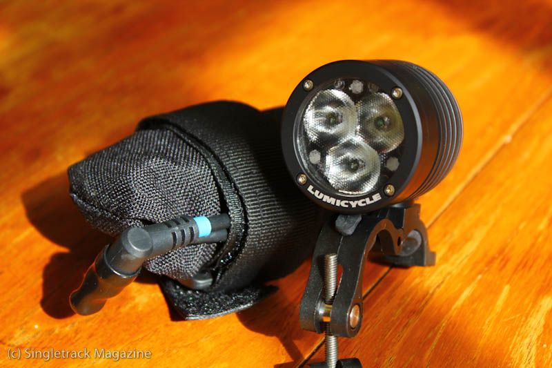 The Lumicycle The LED3 XPG blasts out 1,340 Lumens (400 Lux at 5m donchaknow) from three CREE LEDs. The lens aims to gives a medium beam spread but we like it because it looks a bit like a fly’s eye. The light uses a 2.6Ah battery pack and is said to give two hours output on the maximum setting but a more useable four hours if you can make do with a mere 950 Lumens. Head and bar mounts are included.