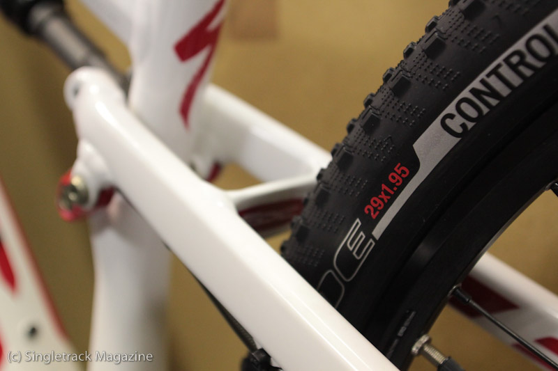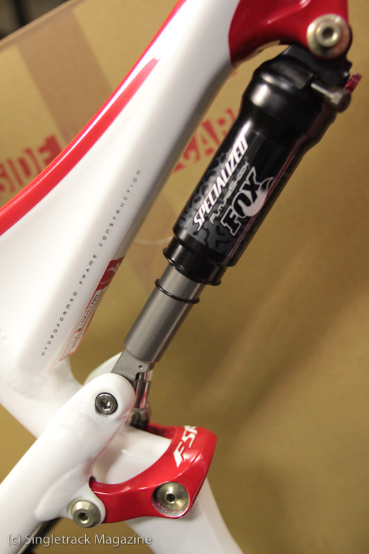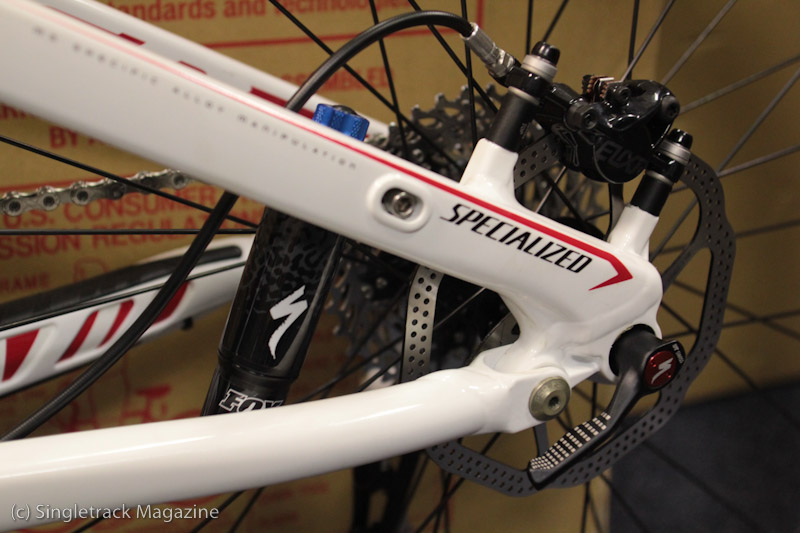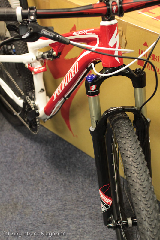 This rather gainly looking big wheeler is the 100mm travel Epic Comp. It’s the entry level full sus 29er in the Specialized Epic range, with 100mm of travel either end and an M5 aluminium frame. As with every Epic, rear suspension is automatically controlled by an inertia valve, this using the latestFox/Specialized FlowControl Mini Brain shock with Brain Fade inertia valve.