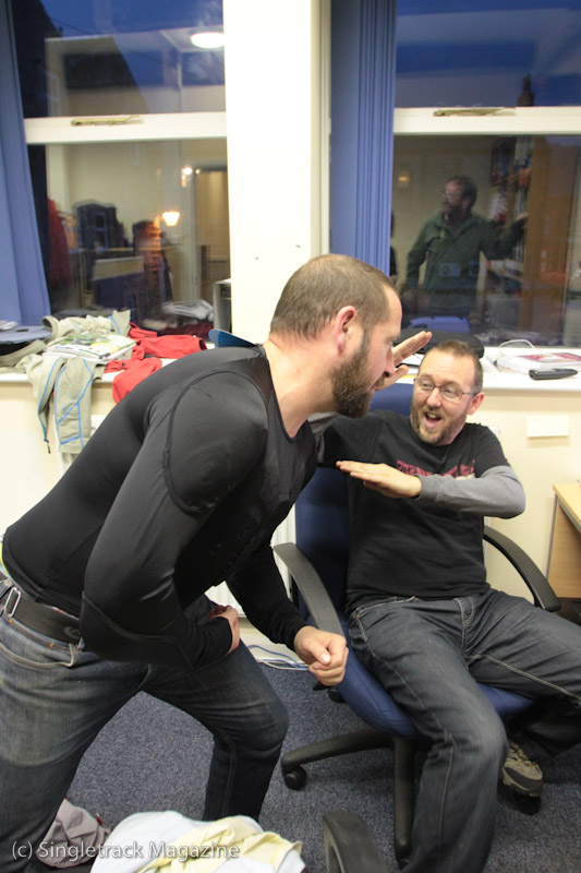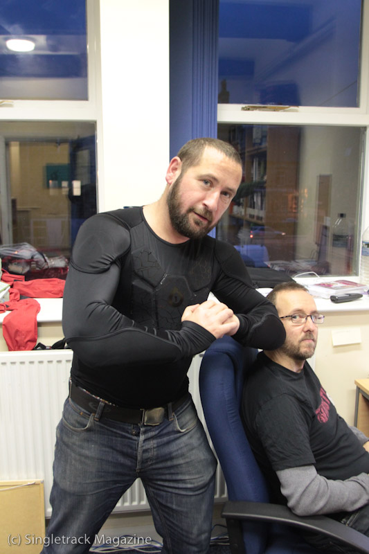 Matt may have lost the ‘Vernon Wells in Mad Max 2’ haircut but that doesn’t mean he’s given up on the apocalyptic future, far from it. A cunning mix of EVA padding on the chest and ‘Intella-Foam’ shoulder and elbow pieces sewn into a compression fit base layer should offer him lightweight protection from boomerang wielding feral kids or simply falling off his bike. Flat locked seams should make it comfy to wear and there’s also an elbow-less short version available.