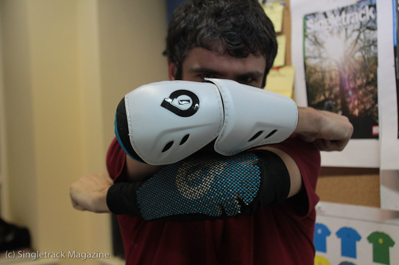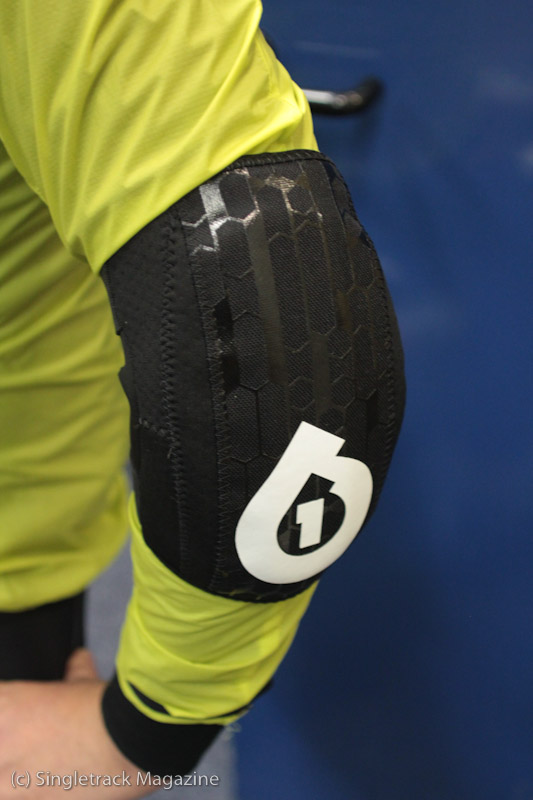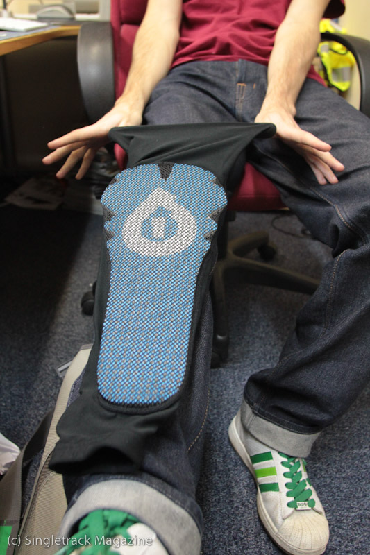 Again, the Comp Elbow (£24.99) uses a two-piece hard shells, articulated over a EVA padding body with crossed over straps to keep them in place. The Rhythm Elbow (24.99) is a bit of a new concept – it’s basically similar to an armwarmer but with added protection, using a stretchy sleeve outer with silicone grippers to prevent it moving. Bash resistance is given by the perforated EVA foam covered with with touch mesh. Should be just the trick for anyone that wants some less-obtrusive protection on the trails.