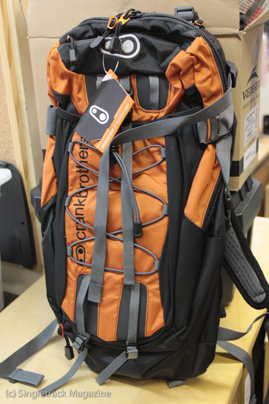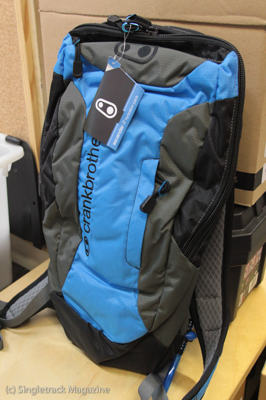 This is our first look at the new Crank Brothers packs. The Ascender is, unsurprisingly, designed for cross-country style biking with a 13 litre volume and 3l slime-resistant microban bladder. The pack is made from tough looking coated nylon with ventilated padding on the back. The bladder itself has a proprietary high flow hose and valve, which Crank Brothers say is ‘leak free’. The inside has lots of organised pockets and there’s a separate lined pocket for your glasses or phone.