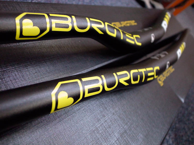 Magic numbers are a sweepy 9 degrees back with 4 degrees up and Burgtec say they’re tested to MotoX standards. Conveniently they have cut down marks on them and the 15 and 30mm rise versions weight 310g and 330g respectively.