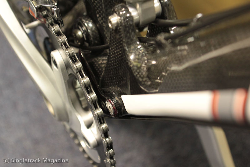Hard to make out, but there’s little kevlar chain guard hidden behind the chainstay. Neat.