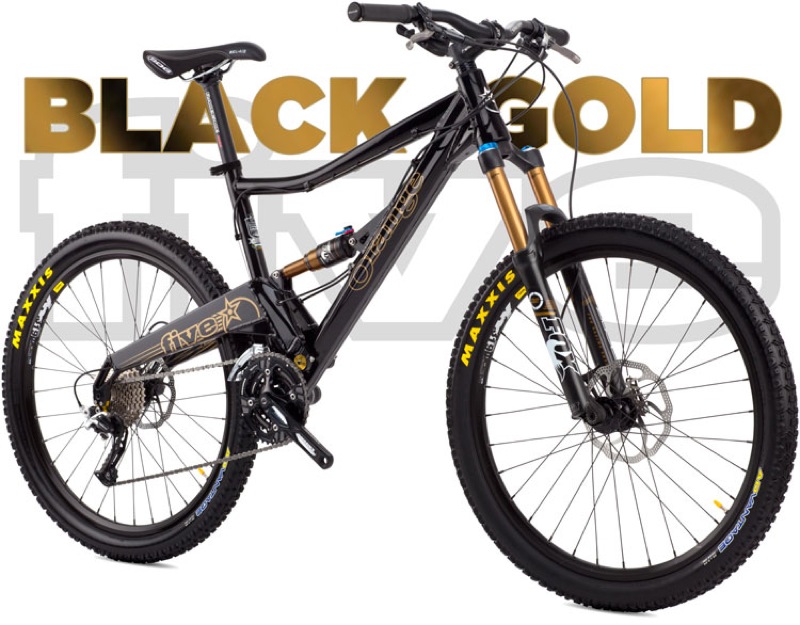 The gentlemen of Halifax have minted a new limited edition Five model called the Black Gold, offering the gold of a Kashima coated Fox Factory fork and shock mated to the Jet Black frame with Maxle swingarm. You get a 10spd Shimano XT/SLX drivetrain, RaceFace crankset and Avid Elixir 5 brakes to complete the build. Only 100 bikes will be made, each costing £2,699.99, a full hundred quid cheaper than the existing Five Pro.
