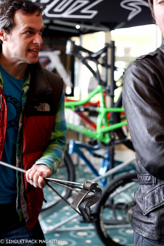Dickon of Santa Cruz distributor Jungle Products nipped to his local farmer’s superstore to get this cattle brand with the SC logo knocked up. It’s going to be used for branding bike stands, team riders and errant subscription managers…
