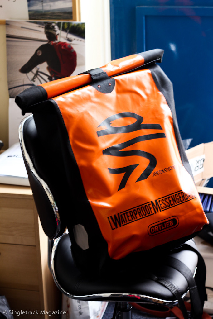 It’s a classic waterproof messenger bag from the German luggage specialists at Ortlieb. It’ll fit 30L of stuff inside it and has a proper rucksack style harness and waistband to stop everything moving about.