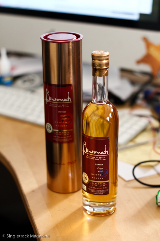 Benromach is Speyside’s smallest distillery but they produce some of the best single malt whisky out there and this particular dram has a whole host of gold medals from various competitions. It’s matured in a mix of Bourbon and Sherry casks before being transferred to European oak Oloroso Sherry casks to mature. Benromach is also heavily involved with mountain biking, sponsoring the No Fuss Three 10 series. Resident whisky aficionado Chipps should be pleased…
