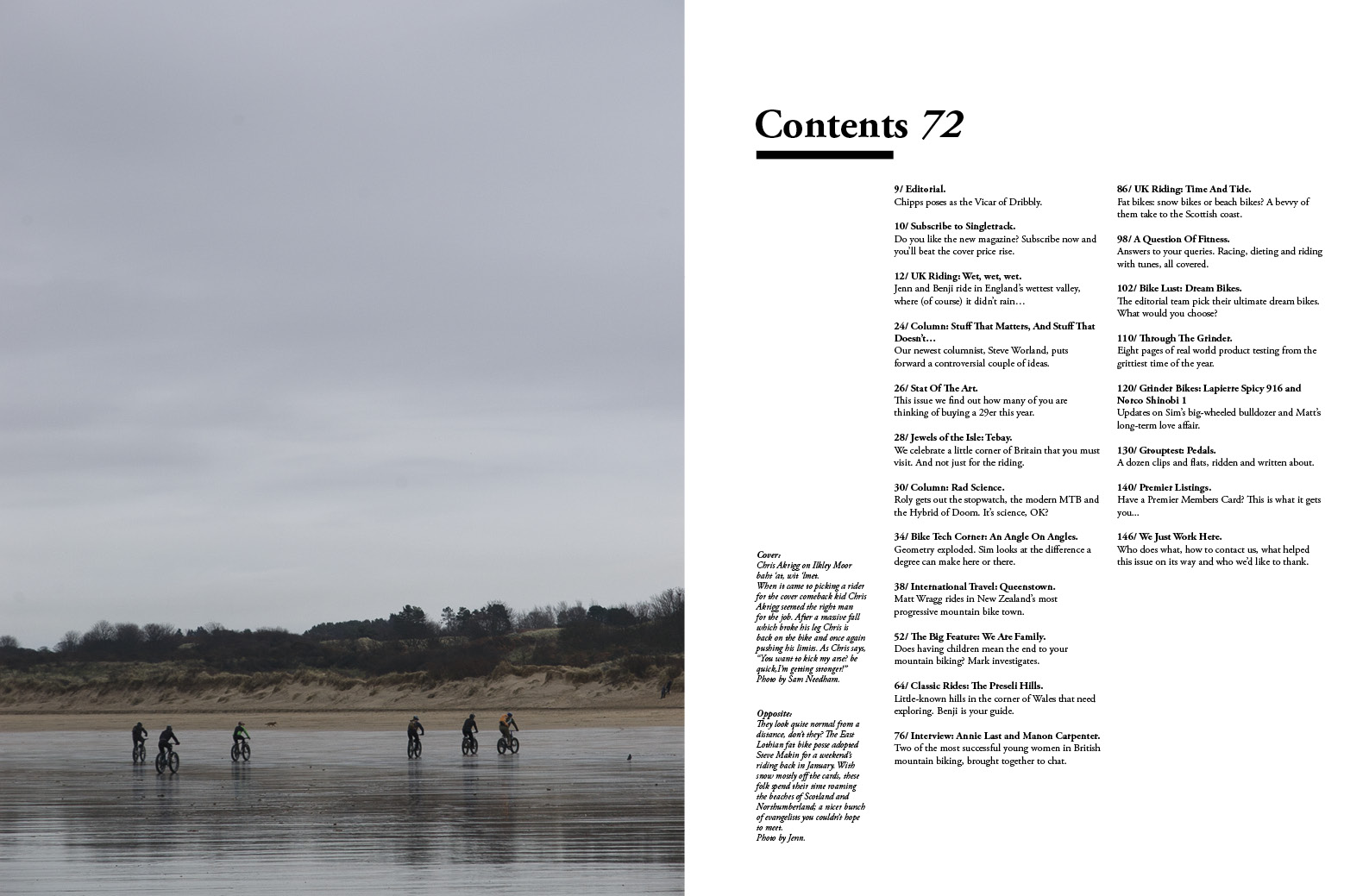 Contents Image: They look quite normal from a distance, don’t they? The East Lothian fat bike posse adopted Steve Makin for a weekend’s riding back in January. With snow mostly off the cards, these folks spend their time roaming the beaches of Scotland and Northumberland; a nicer bunch of evangelists you couldn’t hope to meet.