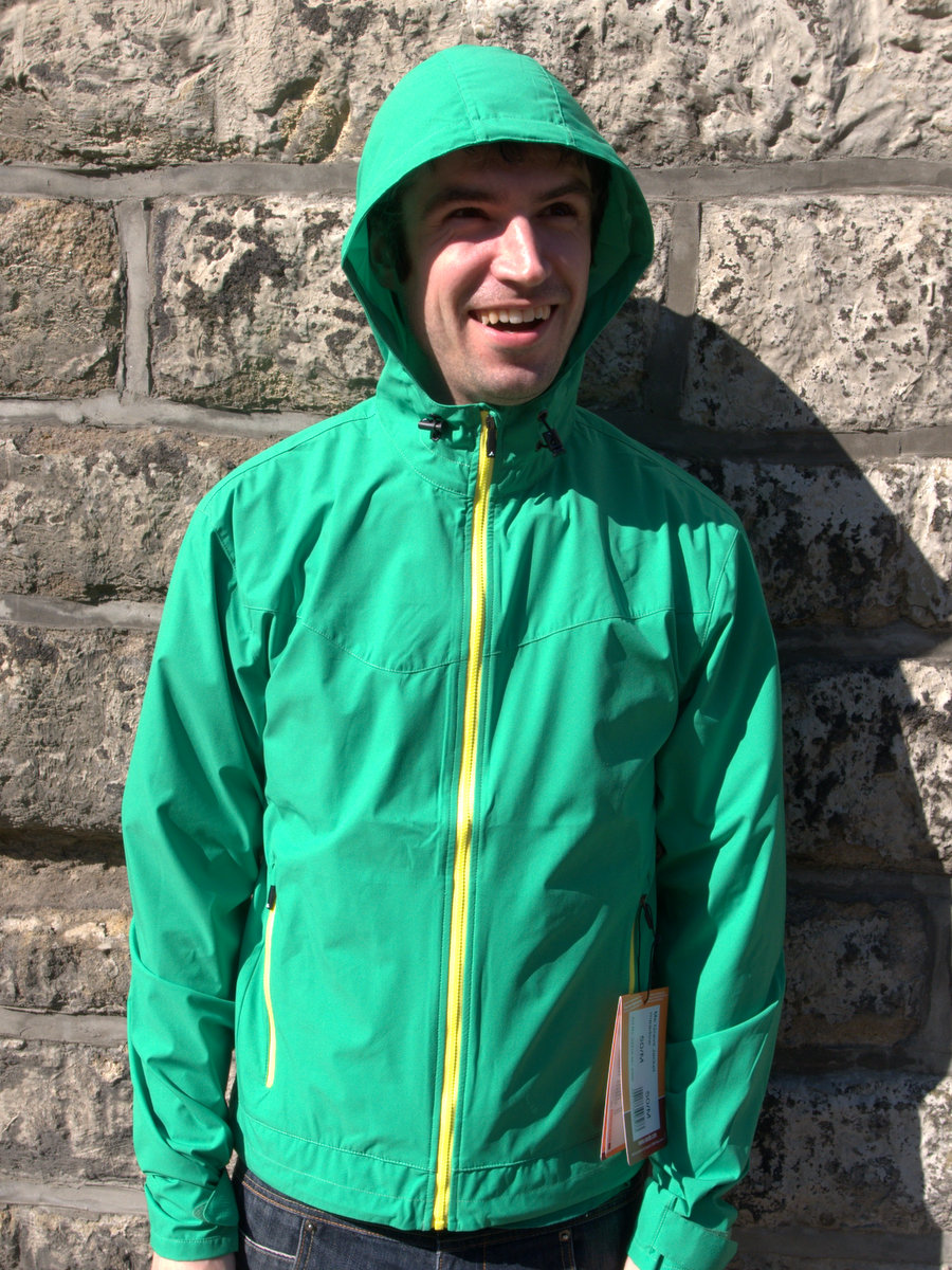 Nice summerweight windproof jacket from Vaude. Two pockets, a cosy hood, nicely cut, and proudly possessing Vaude’s ‘Greenshape’ label for ecologically friendly manufacture: which means it’s “made of at least 90% organic cotton or recycled materials, colored using the eco-friendly VAUDE ecolour dyeing process or made to conform to the world’s most stringent textile standard bluesign®”.