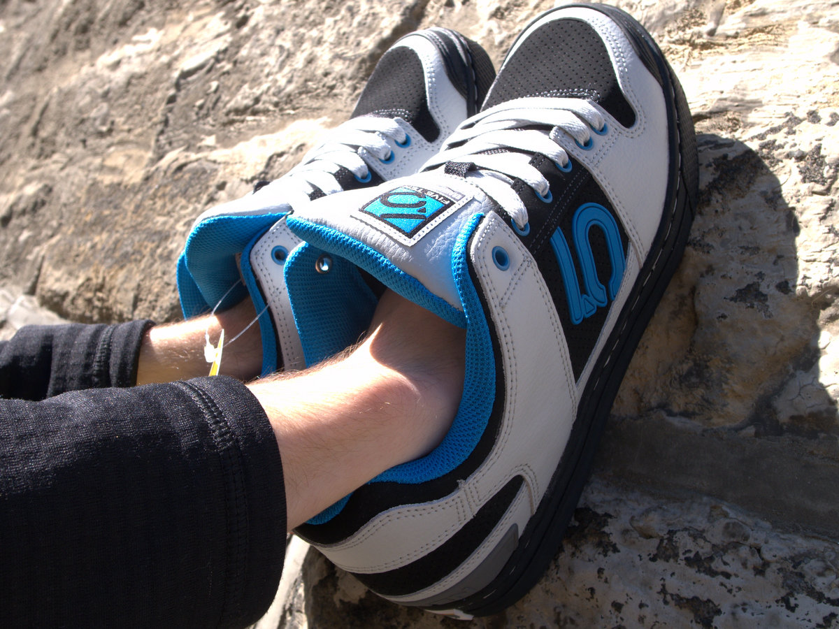 Flat pedal shoes from FiveTen. Sticky rubber, low cut, nice colour.