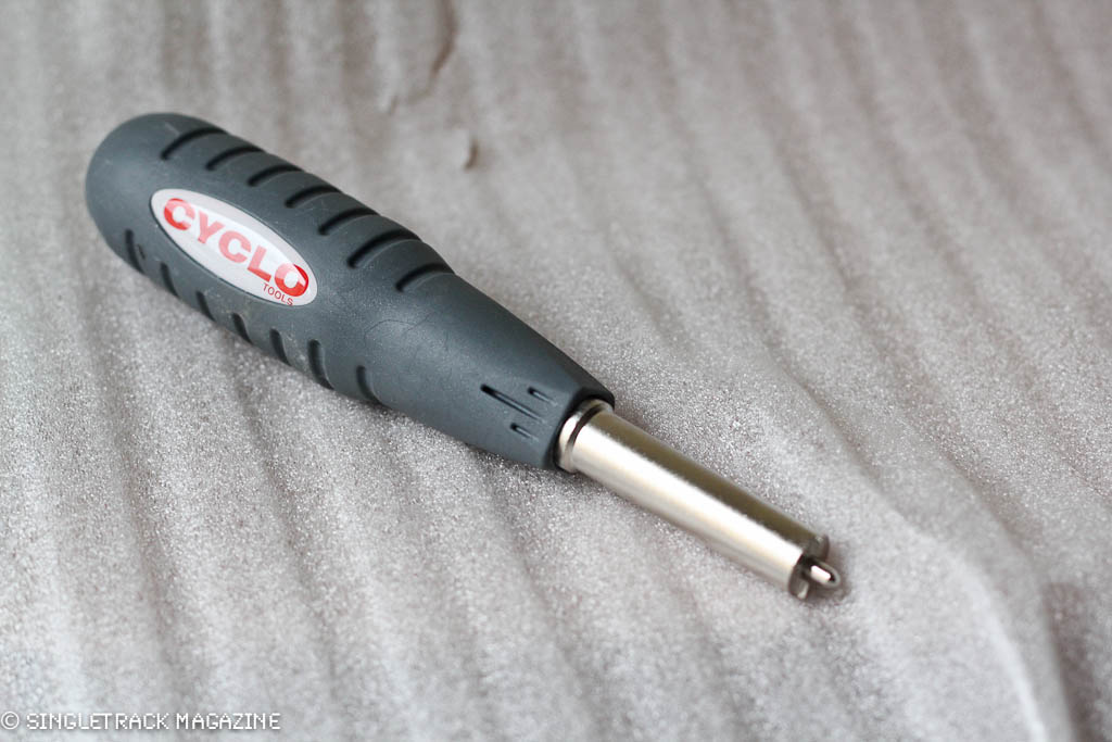 With the plethora of new headset standards, the Singletrack workshop/pile of tools in a room has been lacking something to knock out larger diameter headset cups, save a screwdriver. It’s made from high quality spring steel and has a solid boss at the top to give it a bit of heft and stand up to heavy use.