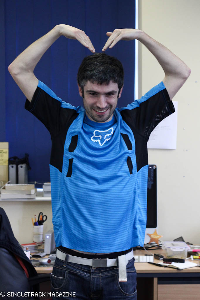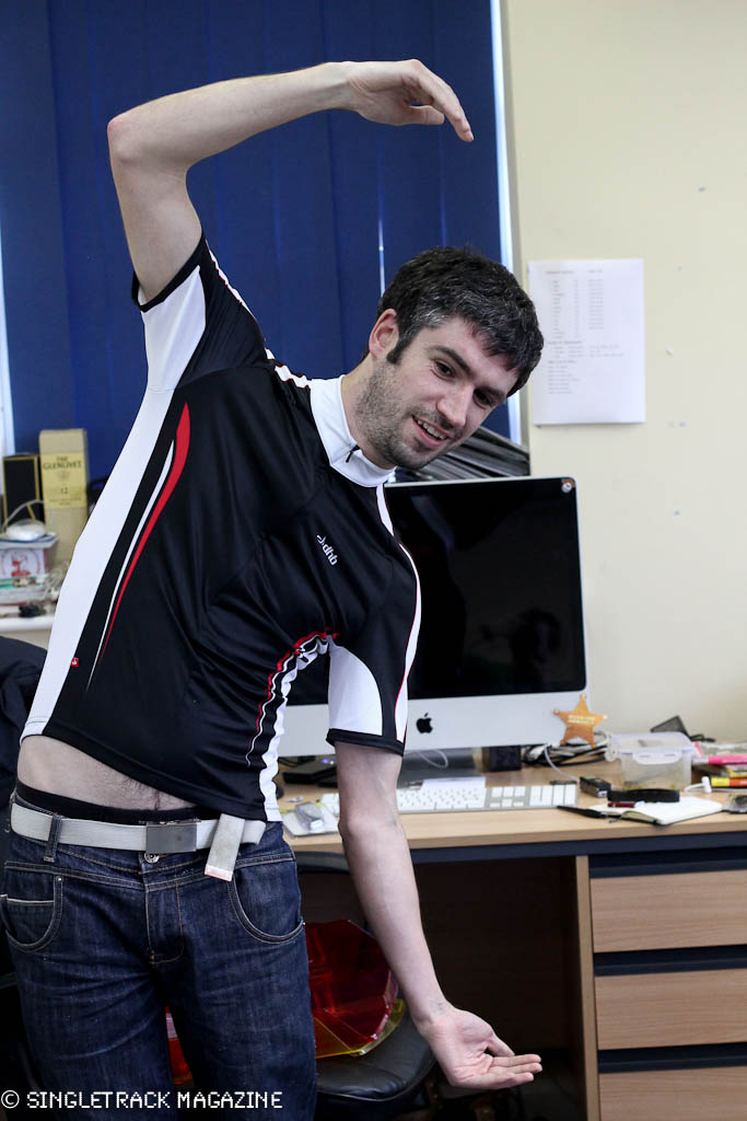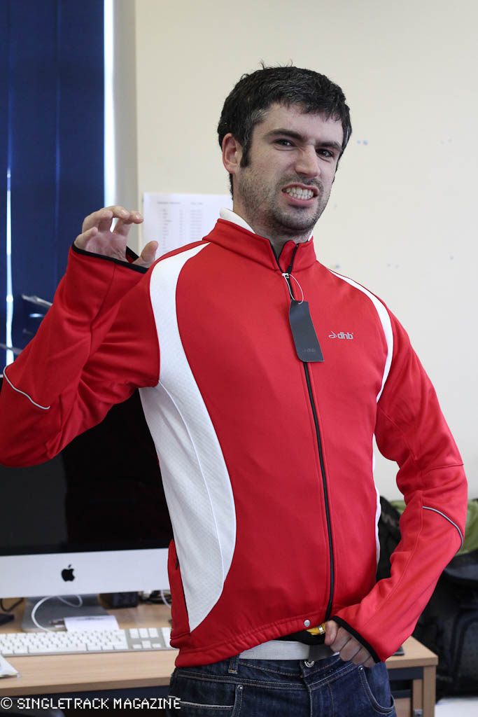 Simbob is modelling the Momentum jersey, which dhb reckon is just the trick for covering Spring, Autumn and Winter riding. It’s made from waffled polyester fleece. There are reflective details on the anatomically cut arms and back, along with elasticated wrists to keep out drafts. The neck has a chinguard to prevent any chafing and the centre rear pocket has a liner to prevent sweat from damaging any valuables.