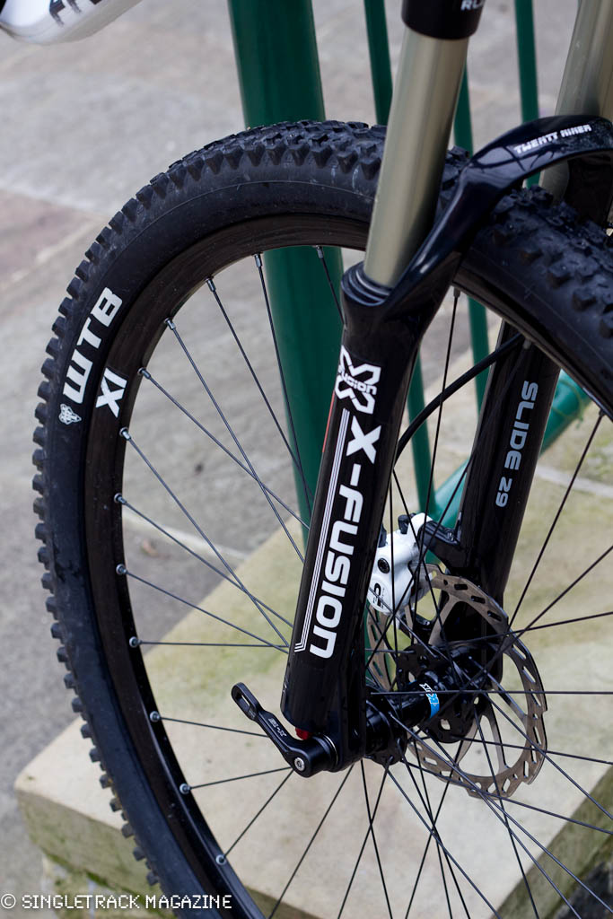This bike is specced with new 15mm axle equipped X-Fusion Slide 29er forks, also from the Upgrade family. They come with rebound and lockout adjustment, plus they’re internally adjustable from 80mm to 120mm and a 650B adaptor is also available. The Kinesis Maxlight XI wheels are also brand new for 2013, being tubeless ready with eyeletted 22mm wide rims for maximum strength and minimum weight.