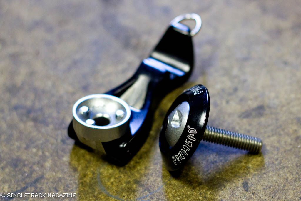 With a set of top end forks costing almost a thousand quid, it kinda makes sense to protect them against theft, even if the rest of your bike is conventionally locked up. The Pinhead lock uses a specially keyed bolt head and adaptor to replace your headset cap and frustrate any would-be speed mechanics from a quick street strip-down. Each key is individually number and you register with Pinhead after buying it, so spares can be sourced if you lose the original. They also do seat clamp and QR replacement security bolts…