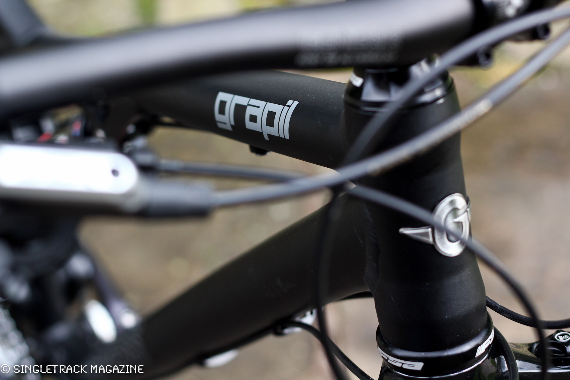 It’s been a long time coming, but we’ve finally wrestled one of the first production Genesis Grapil full suspension bikes from the hands of designer Dom. Made from double butted 6061 aluminium, it’s designed to be a worth tag-team partner for extended bouts of big mountain riding, as well as pitting yourself against techy death-matches in the woods. They reckon they’ve got the handling clinched, with relaxed angles, 140mm of travel up front and 120mm of linkage activated single pivot bounce out the back, running on low-maintenance and friction Norglide bushings. It’s going to be unleashing the smackdown (hopefully not of the rider) as part of our ‘Lakes bikes’ test for Issue 77…