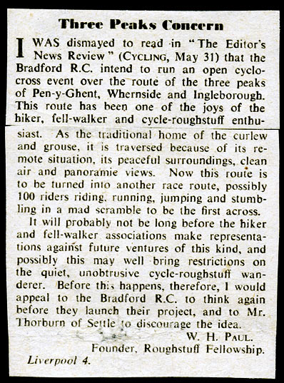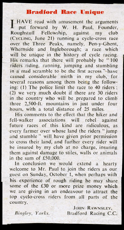 For history fans, here’s an exchange between the founder of the Rough Stuff Fellowship and the first organisers of the race. Our favourite line has got to be “we very much doubt if there are thirty riders in the country who will be prepared to climb three 2,500ft peaks”…