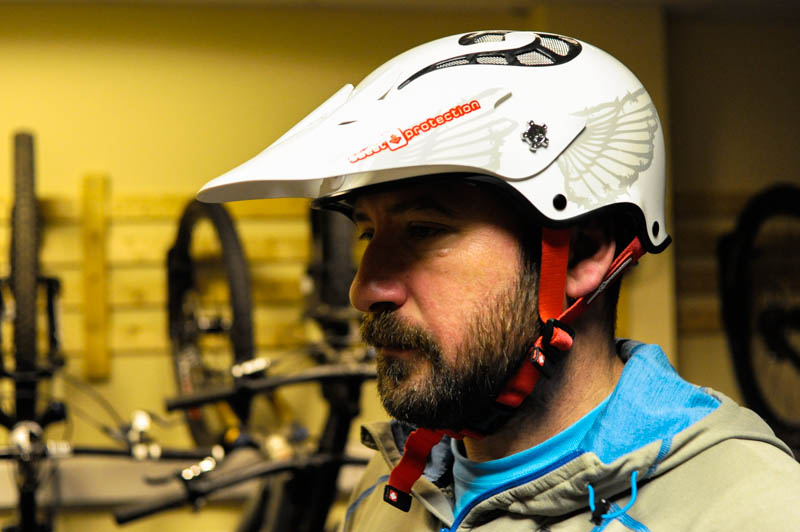 Wanted: Princess whose head will fit the glass slipper Urge Endur-o-matic helmet. GSH ALAWP PnP WE. Matt had a go and was disappointed to find out he may just be an ugly sister. Tough breaks for Matt but hopefully no breaks for the helmet. There are more of this style of helmet appearing, aimed less at XC racers and more at those who don’t need or mind less venting in preference to more protection all round their noggins.