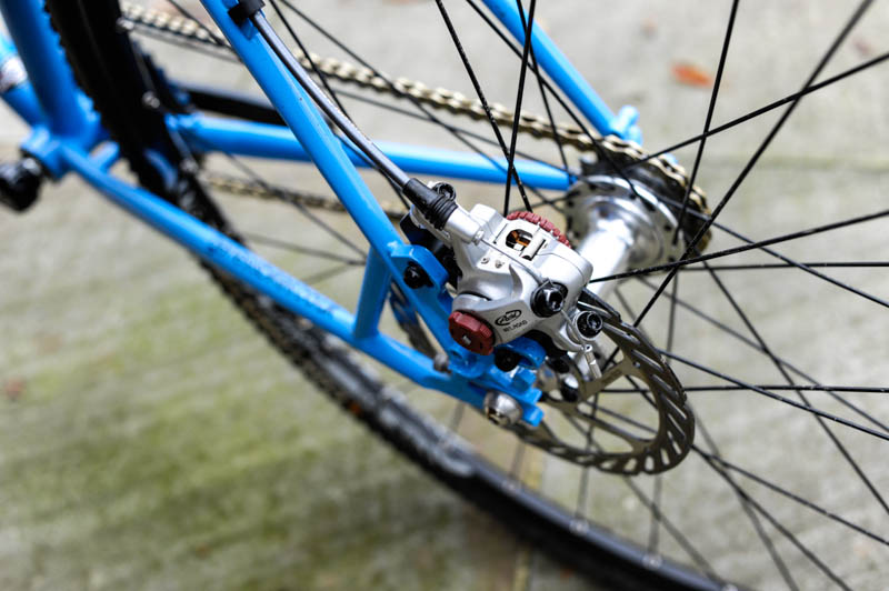 On the first day God created light. And presumably an alarm clock to get him up for the second day when he was supposed to create a firmament between the waters. What do we have here between the waters of the canal and the river Calder? It’s a Genesis Day One Disc of course! £699 gets you a classically lined array of Reynolds 520 tubes all sprayed in a particularly fetching blue. It also gets you a set of Avid BB7 disc brakes and Genesis have even removed all those unnecessary gears you don’t want. Want the gears back? You’ll want a Day One Alfine 8 or Alfine 11 for £1149.99 and £1749.99 respectively.