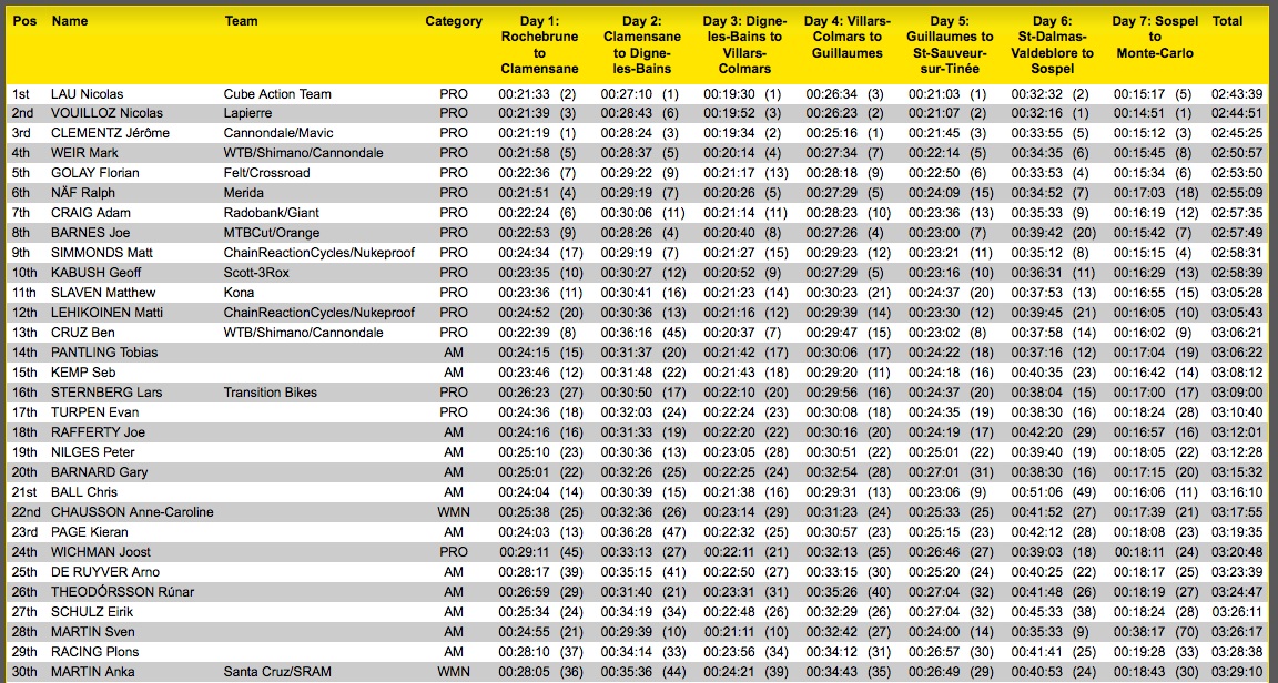 Normally, then, the last day is relatively easy after what’s gone before it – we say relatively easy – it’s still 30 km of riding and nearly 900 metres of climbing, with 4 Special Stages before we reach the coast, the first riders are normally above Monaco before midday and everyone is by the beach by 2pm drinking a beer and dive bombing each other in the sea.