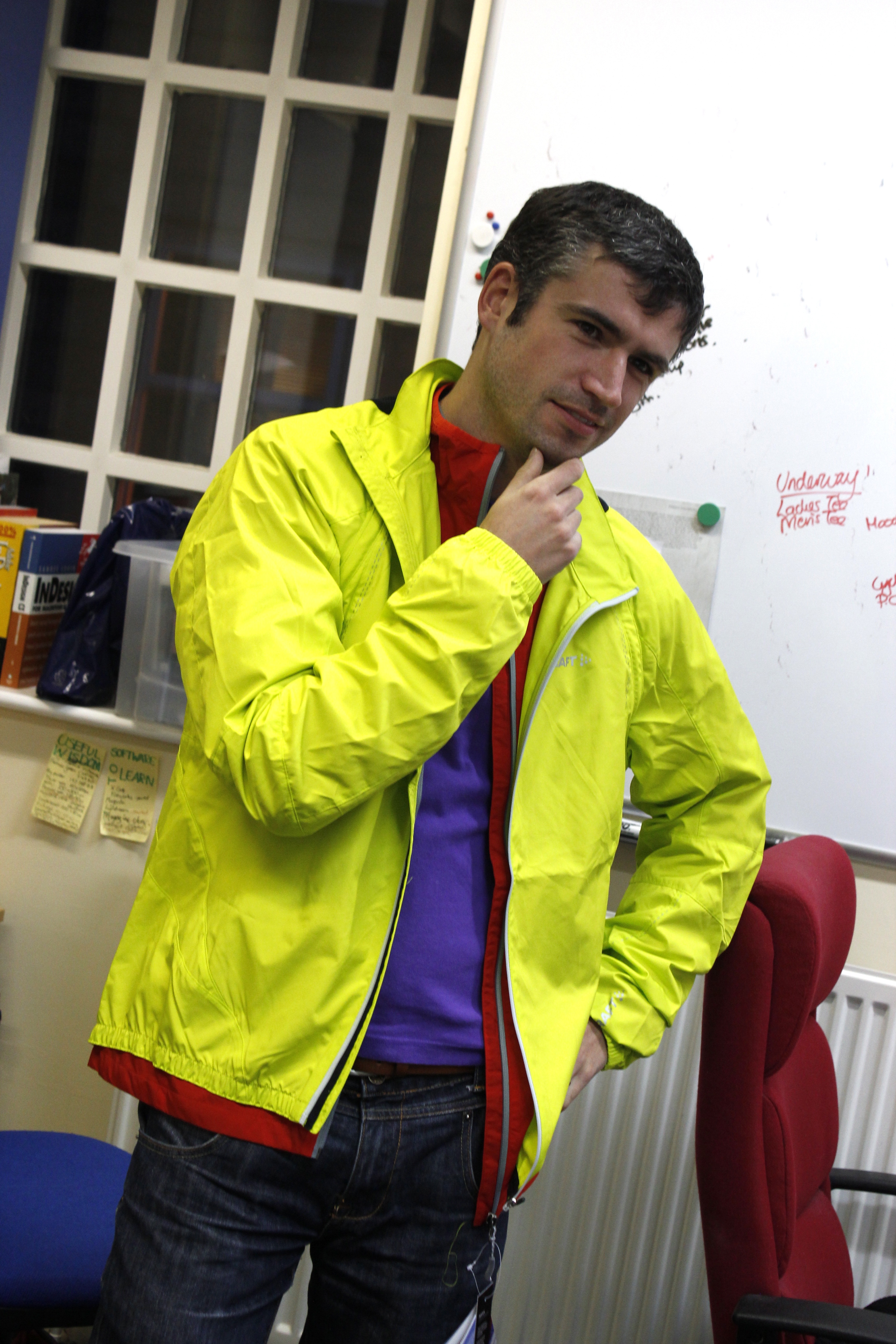 A zippy-offy, jacket-to-gilet, protective layer from Craft. Comes in a fetching not quite lime-green or hi-vis colourway. Sim isn’t sure. “Does it bring out the colour of my eyes?”