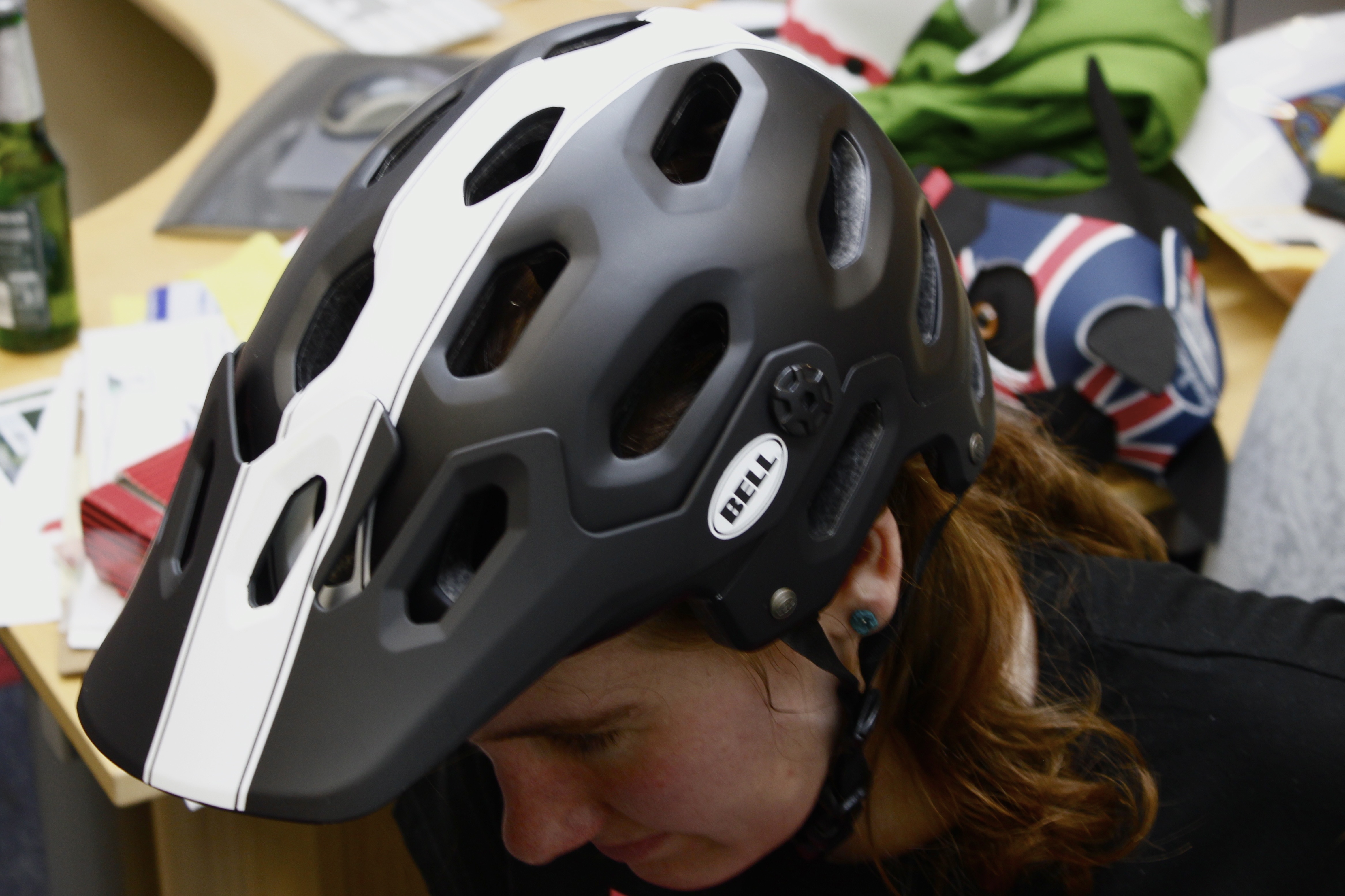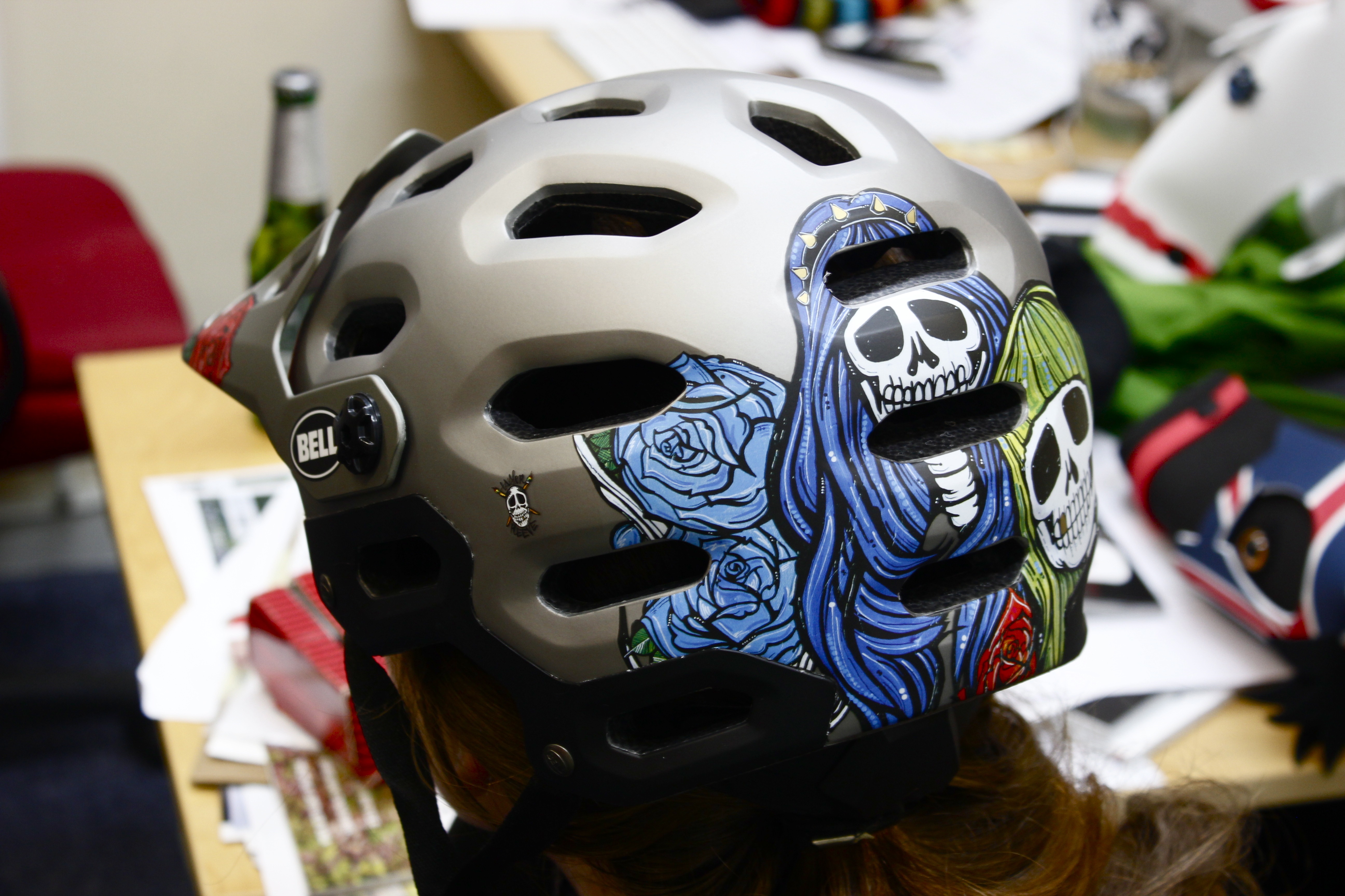 These are pre-production samples of Bell’s new all-mountain lid. Nicely svelte, with the usual additional coverage you’d expect from the new breed of helmet shapes and though these particular examples aren’t to be ridden in we can confirm that they still vent pretty damn well in the running up and down the stairs test. We’re looking forward to getting our proper test one. Loadsa colours available, from this super neat racing mono to more garish ‘all the clashing crayons in the box’. Predictably Grace liked the one with the skulls on the best. Retail will be around the £100 mark. We’re not sure the peak is long enough, though…