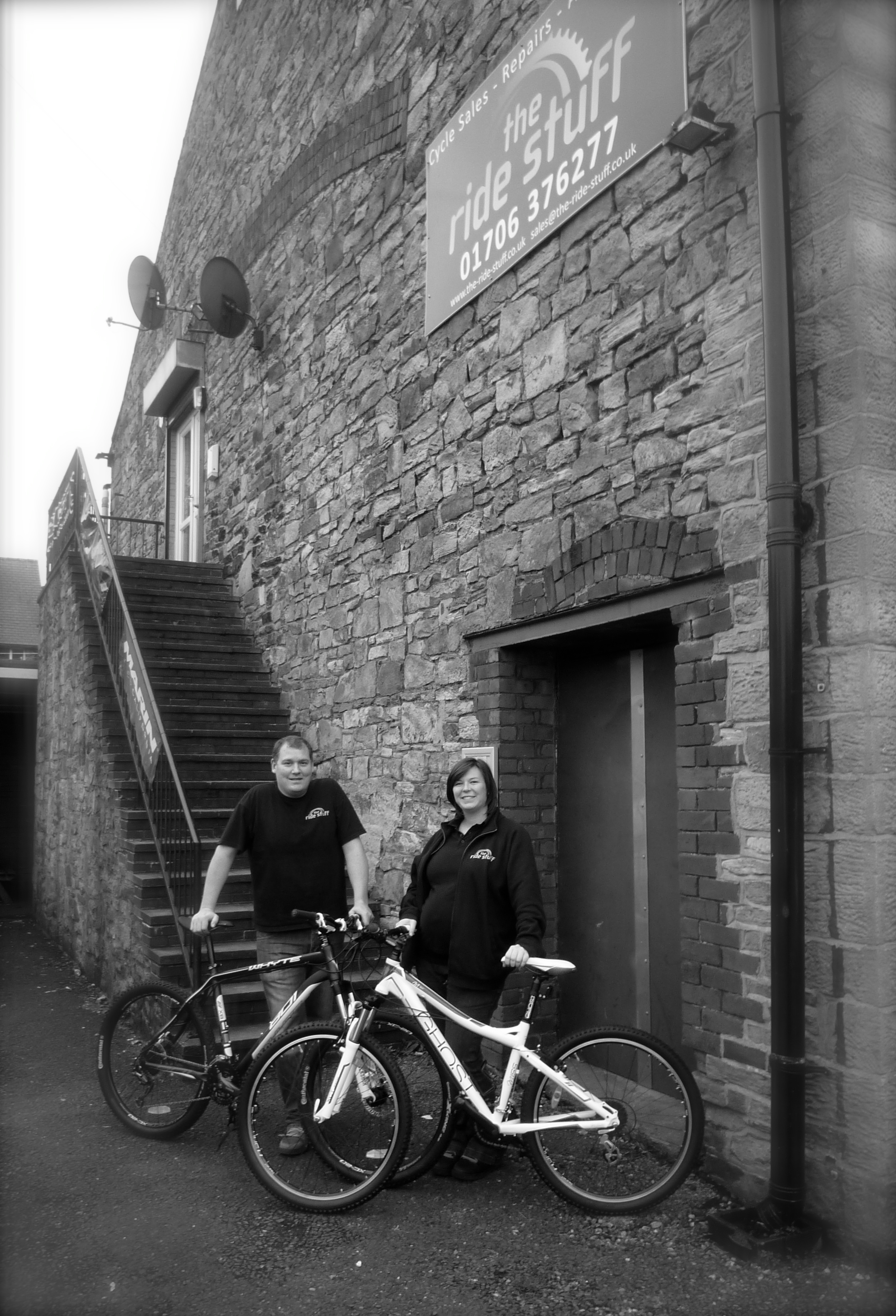 The Ride Stuff is owned and run by Paul and Naomi, we opened our doors in August 2011 with a view to being a Bike Shop with knowledge and personality. We are located on the foothills of the Pennines in Littleborough, which is perfect for any type of riding especially hills. Our shop is situated in a valley so the only way out is up! Our customers love our seating area with coffee and cake (cake available when Naomi is in) and we like the fact that our shop feels like part of the community and is gradually starting to attract customers from further afield, through our great service and word of mouth.