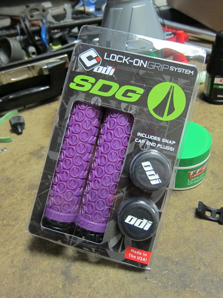 When Odi met SDG the result was a 130mm lovechild Lock-On featuring circular ribbed dampeners to provide plenty of grip. Available in purple  and red, black, aqua and lime green to match SDG Duster saddles.