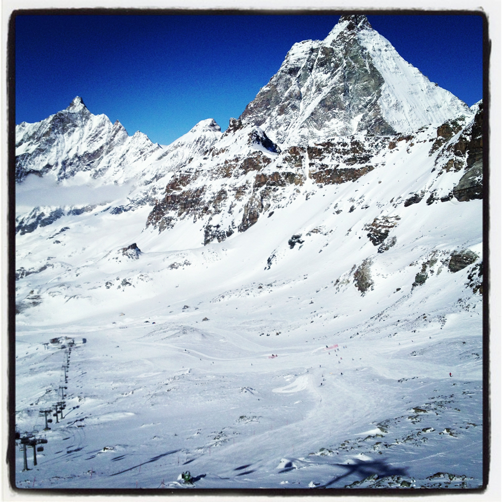 For the last week I’ve been holed up in Cervinia, Italy, in the shadow of the Matterhorn (or more precisely given we were in Italy; Monte Cervino). It was time for the traditional abandonment of sliding down slopes on two wheels for one week of sliding down slopes on two planks of wood instead.