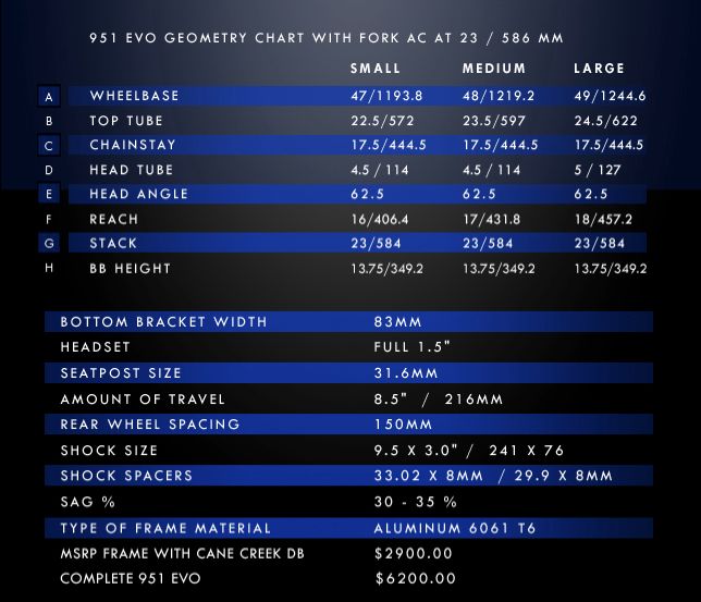 As an added bonus, the first 25 complete 951evo’s will be “limited edition” and feature custom Electric Blue Paint, Anodized Gold Links and Hubs as well as a set of matching HT Pedals at no additional charge.
