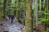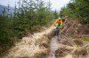 Setting off on the Marin Trail, the initial climb doesn’t seem too bad and the trees keep us well sheltered. There’s the threat of sunshine at one point, but that doesn’t last. We’re treated to the best palettes of different greens of the trip though; from the super-real fresh colours of the new leaves, to the richer, older mosses and muted greeny-browns of the heather and ferns that line the trail. The scenery again has changed from when I first rode this trail, back when it was under construction (Singletrack, issue 6, 2002). The freshly cut trail then has now grown in to look like it’s always been there. Even the stone-pitched, bermed corner that the trail pixies were so worried about (it was the first bermed corner in a Welsh trail centre and it wasn’t in the plans) is now overgrown and almost part of the hillside now; stones still firmly in place.