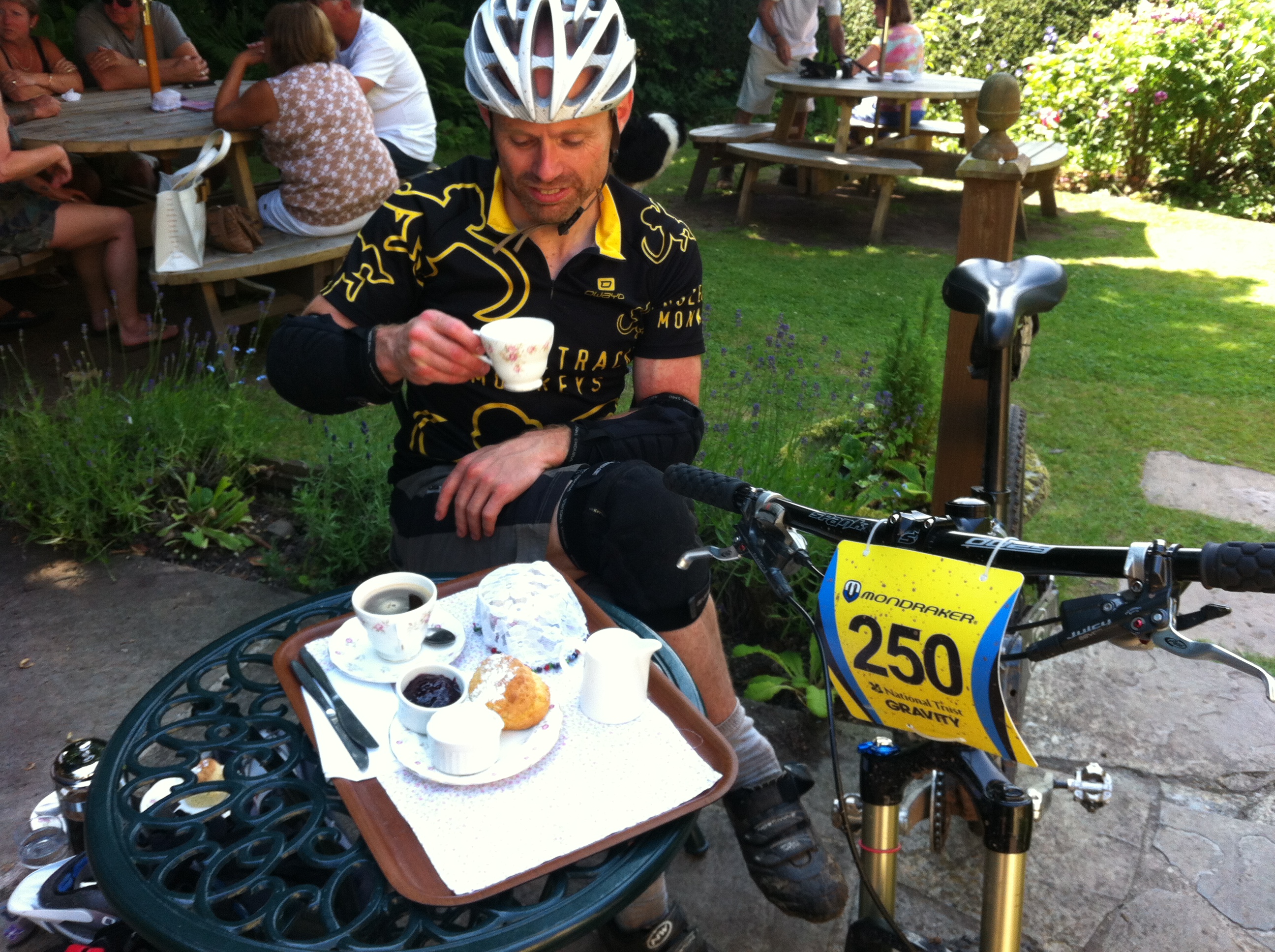 So what was the riding like? Climbs were well thought out and relaxed given you were not timed and could spin gently or rest. Descents were fast, rocky, loose, rutted, chaotic and dusty. Having set off a little early, we added a couple of cheeky extra climbs and descents plus stops for cream teas (this is how we roll in the West Country) and made the final timed stage with plenty of time before course closure. Descent times varied from two to six minutes, with short re-ascents or flats where you blow-up pedalling, before diving into a steeper section. Stage 1 was everyone’s favourite: pedal like crazy for 30 seconds until in top gear before barrelling into a chaos of rocks, corners, gullies and roots, trying not to lose speed for the remaining two to three minutes. A trail you’d normally roll thoughtfully became monstrous at race velocity. Spat out the bottom it was just three minutes ride back to the event field to gabble with strangers about line choices and all mistakes you’d made, or unfortunate mechanicals, that cost you seconds.