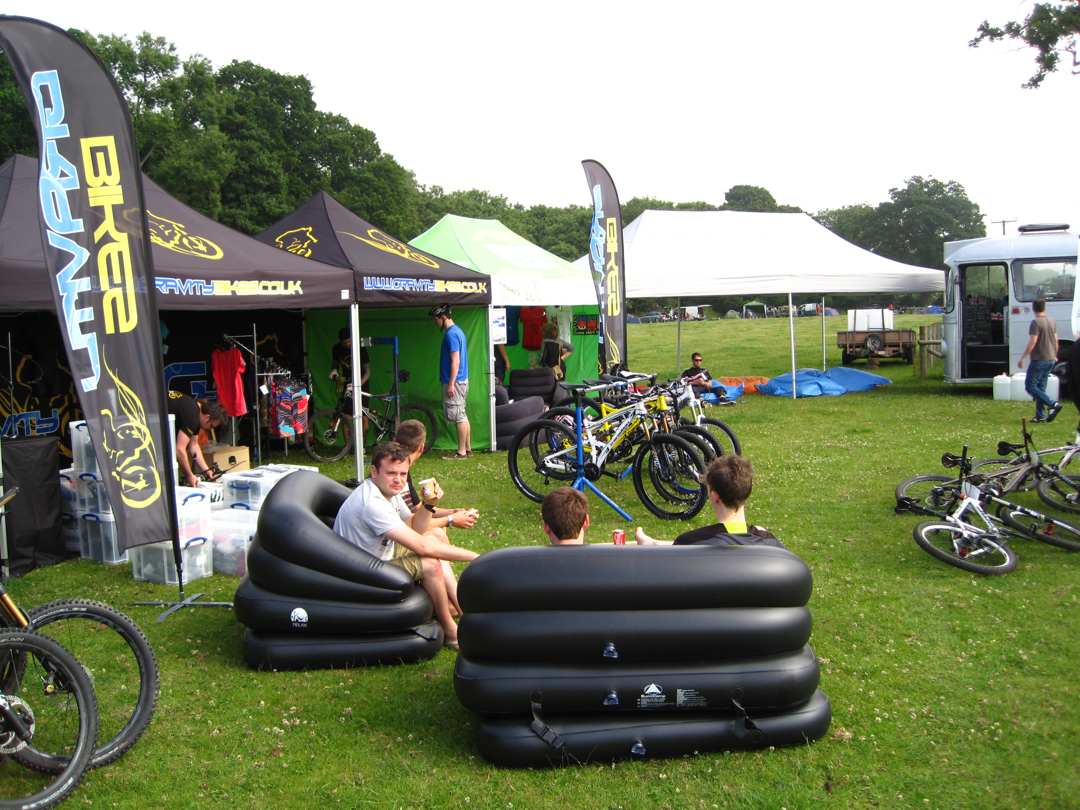 Well, it attracted an interesting mix: A corps of regular DH racers, while the bulk were the usual weekend trail riders, of which I’m one. Most pleasing was the range of abilities, cross section of ages and gender, all enjoying the event. Bikes varied from 4X hardtails to 6in AM bikes (perfect for this event in my opinion) and everything in between, but no DH rigs given the amount of pedalling involved. And that’s the weird thing: the regular DHers, when they prised themselves away from the event field to push up the climbs, put down insanely fast runs, before returning to their blow-up sofas to complain about all the pedalling. The have-a-go riders puffed up the hills and descended, half terrified, but smiling and thankful to be in one piece. The fitter trail riders got the best of it, not struggling climbing the hills and discovering the buzz of pushing themselves to race velocity on the descents. And it’s this group for whom Gravity Enduro really works.
