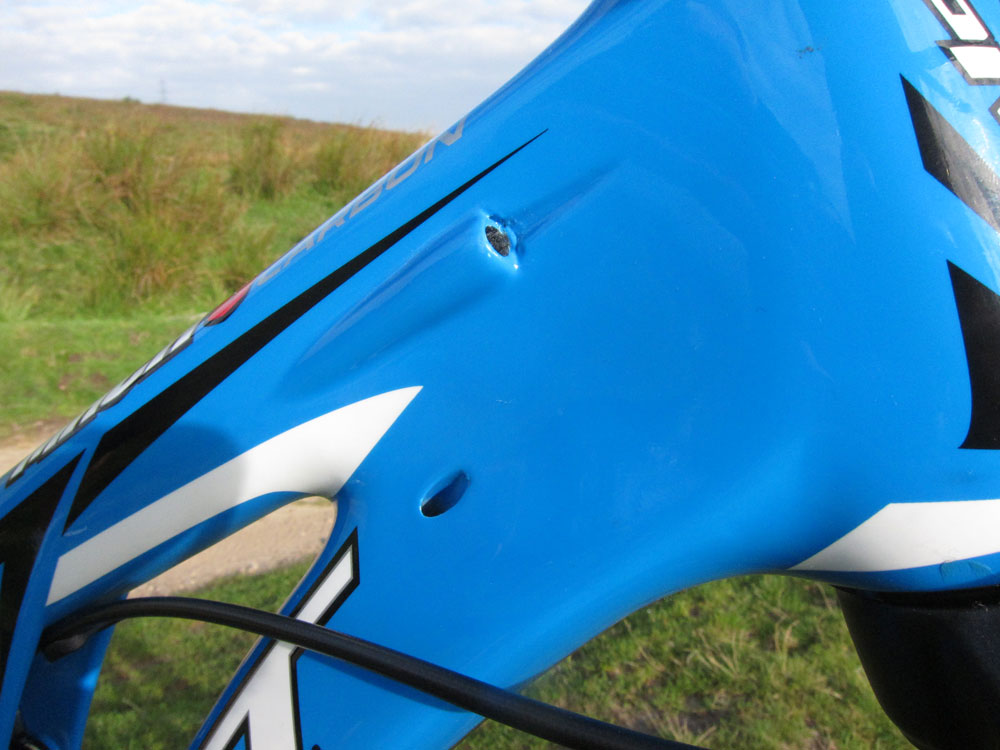 Pivot has been developing the Mach6 for two years now and it’s just about ready now. The bike here is fully functional and rideable, but Upgrade has to keep it clean and shiny until Eurobike. After that, though, there should be rideable demos available to Pivot dealers around the UK. The Mach6 is the natural progression from the 5.7. It features 27.5in wheels, 155mm of travel and has a full carbon frame. There are neat touches like internal and external dropper routing, rubberised downtube and chainstay protector and ISCG05 tabs. And it comes in a Ford Mustang blue with white, or stealthy black with red or yellow decals.