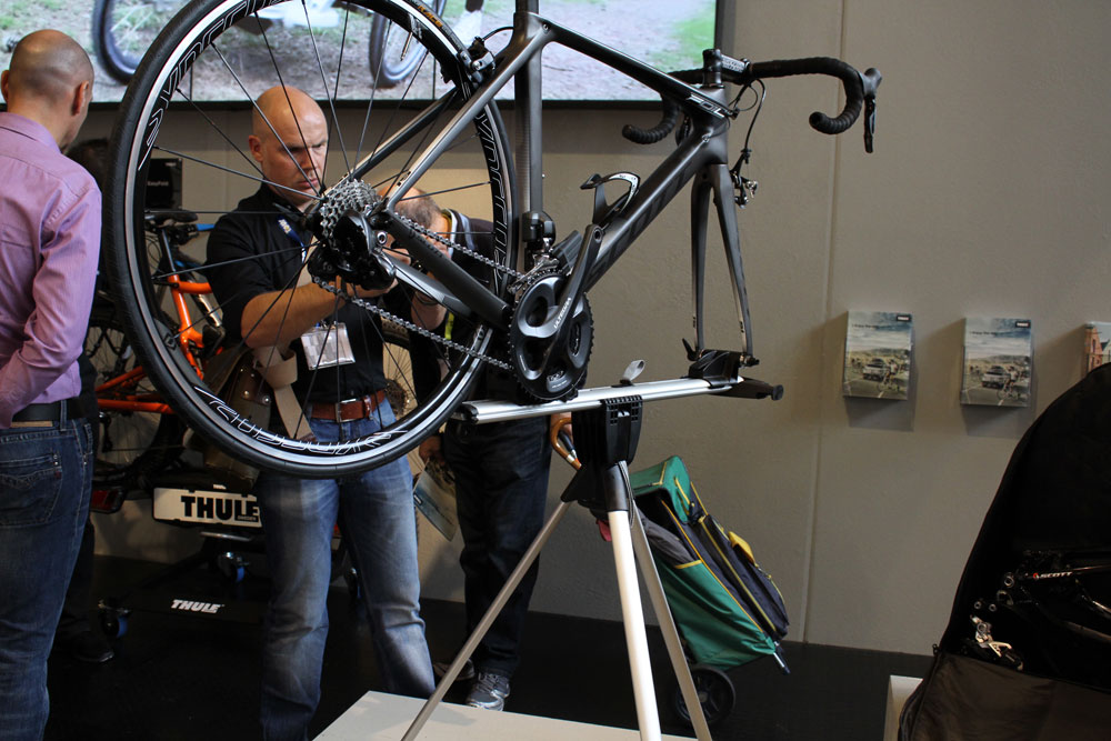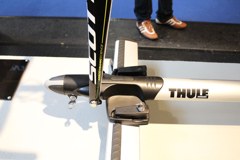 Thule also showed a new road-specific fork-mount rack called the Spirit. Not only is it super-aero, to match your bike, but it will torque-out when it gets to the right tension, to prevent you over-cranking it and damaging your carbon dropouts.