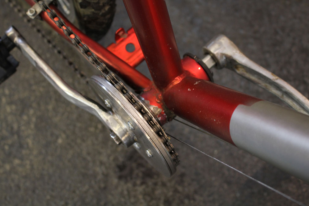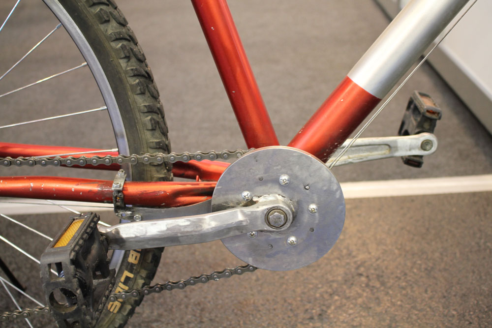 A Polish due were showing off a prototype three-speed crank-based gear system. It’s currently built into a cheap, steel crank, but there are plans to have a more polished (excuse the pun) aluminium version soon. The system uses a planetary gear system, like SRAM’s Hammerschmidt, but it takes up much less space and should be far cheaper to make, so they expect to get it specced on cheaper trekking and town bikes.
