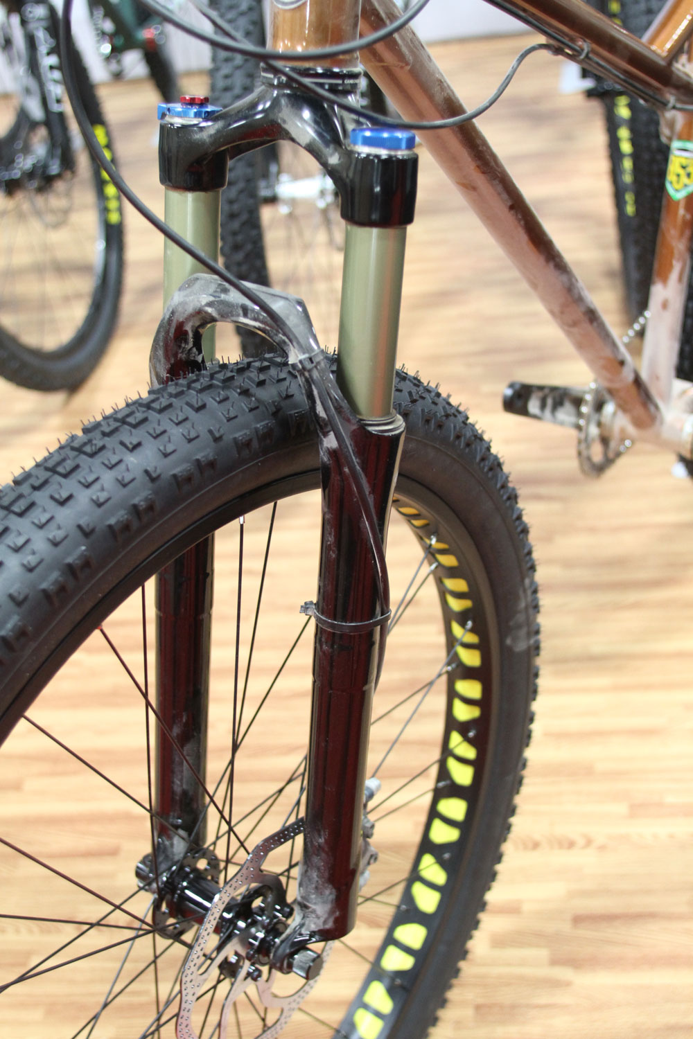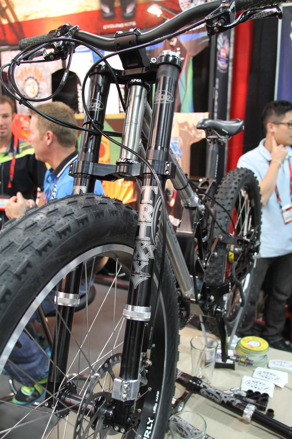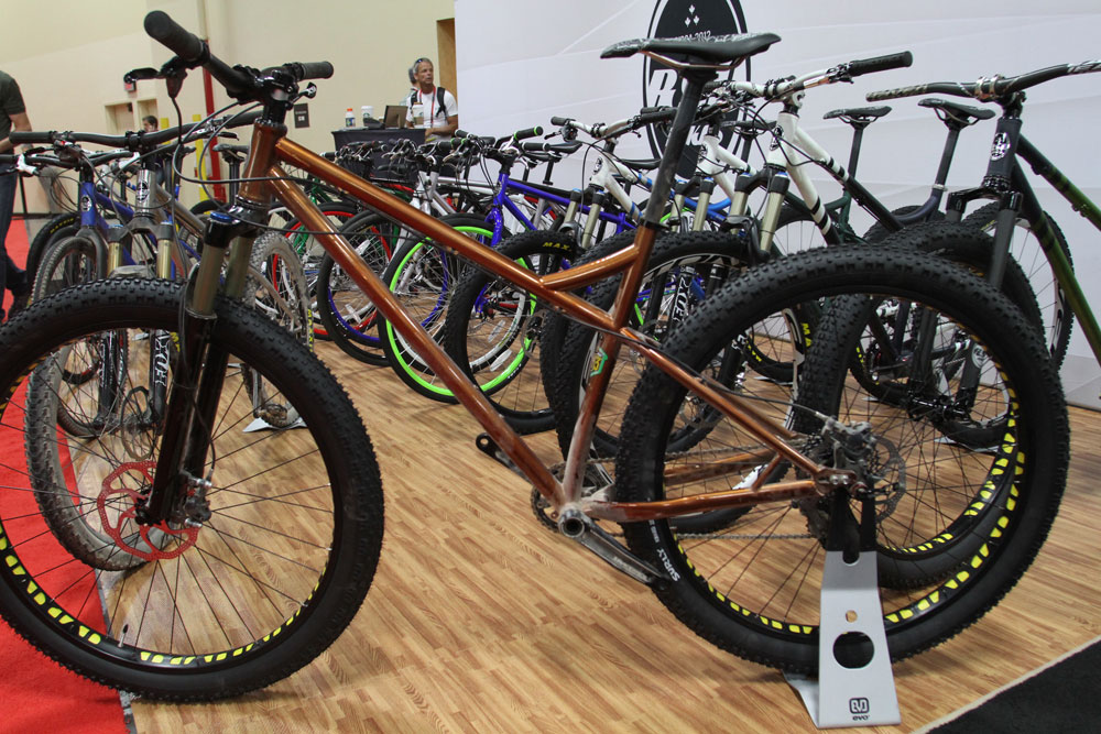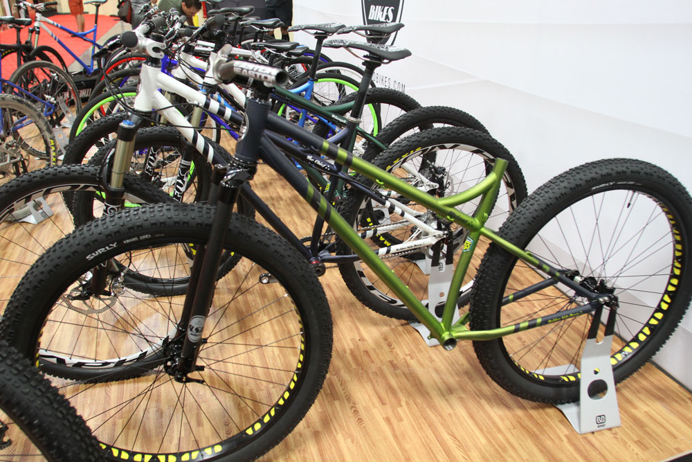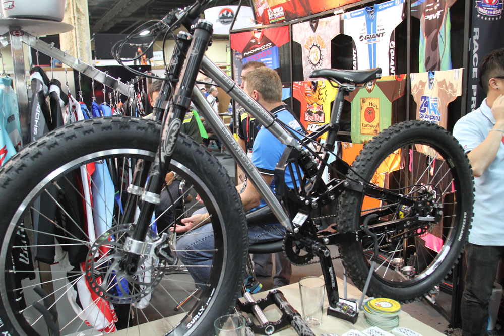 And keeping things semi-fat, we have RSD Bikes from Canada. It’s one of the few companies that has started making bikes (from 853) for Surly’s Knard 29x3in tyres. The designer said that the company got its start because very few people were making good steel hardtails any more (in Canada) so it started making them.