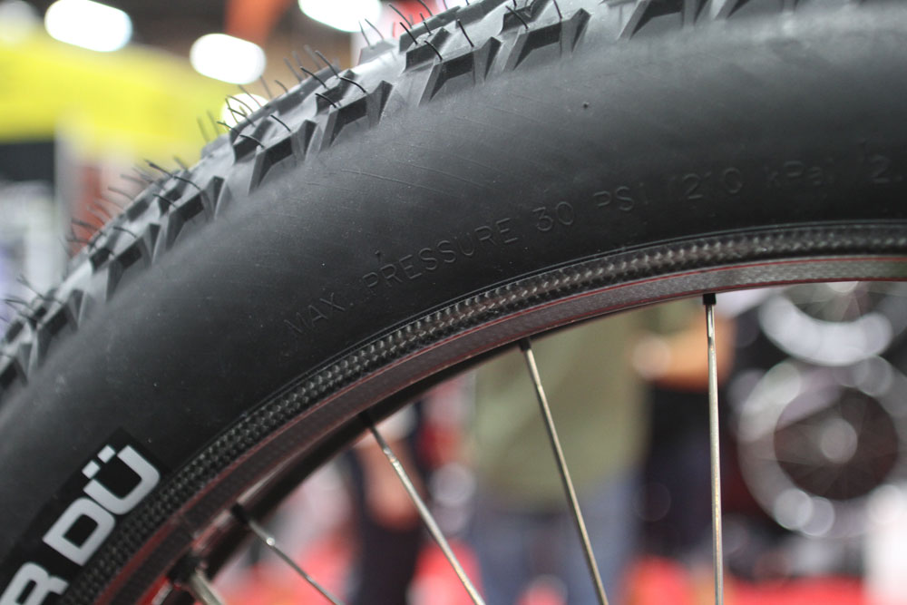 OK, back to ‘normal’ bikes and it seems the demand for tubular rims is growing among racers. Shimano has come out with new XTR tubulars and here’s the Hed wheel. It’s a mere 375g for a 29er. You’ll have to glue your own tyres on though.