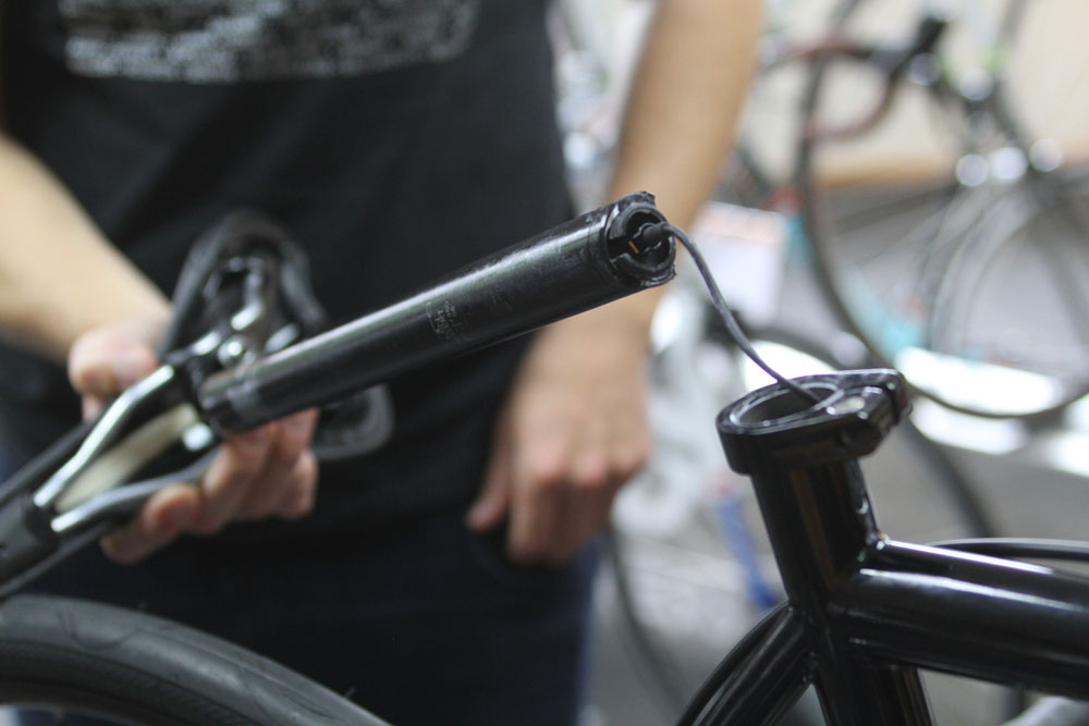 No, it’s not some kind of NSA concealed listening device, or a seatpost bomb, it’s the battery for the new 11 speed Shimano Di2 Alfine electric hub gears. With discs, hub gears and Di2, it could be the lowest maintenance bike you ever have.