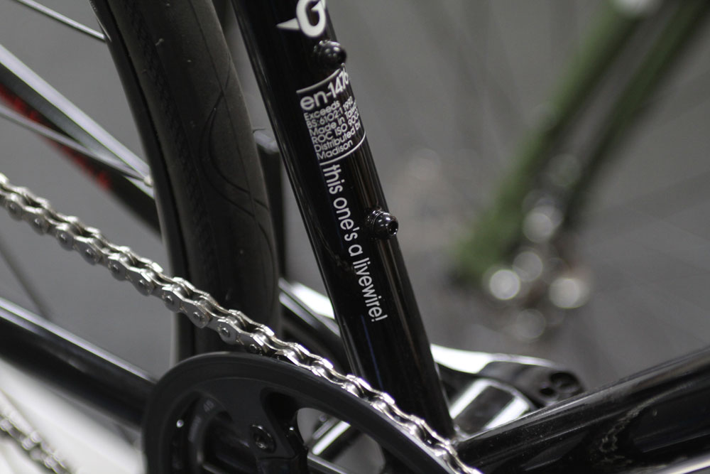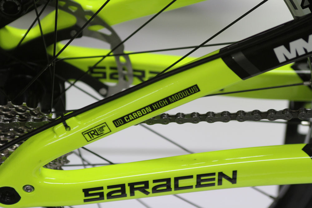Now we’re going over to the other end of the spectrum at Madison’s other house brand, Saracen. As very successfully ridden by Manon Carpenter and the rest of the Saracen team this year, this bike can be yours. £4899 might be a bit of a stiff price to join the club, but you’d have no excuses for not winning once you joined it.