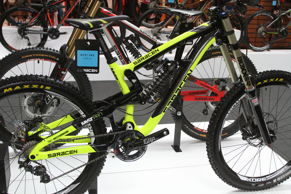 The, even brighter, Saracen Myst Pro is £2,999 and features the same base frame but with slightly more affordable components. Oh, and arguably, in a faster colour!