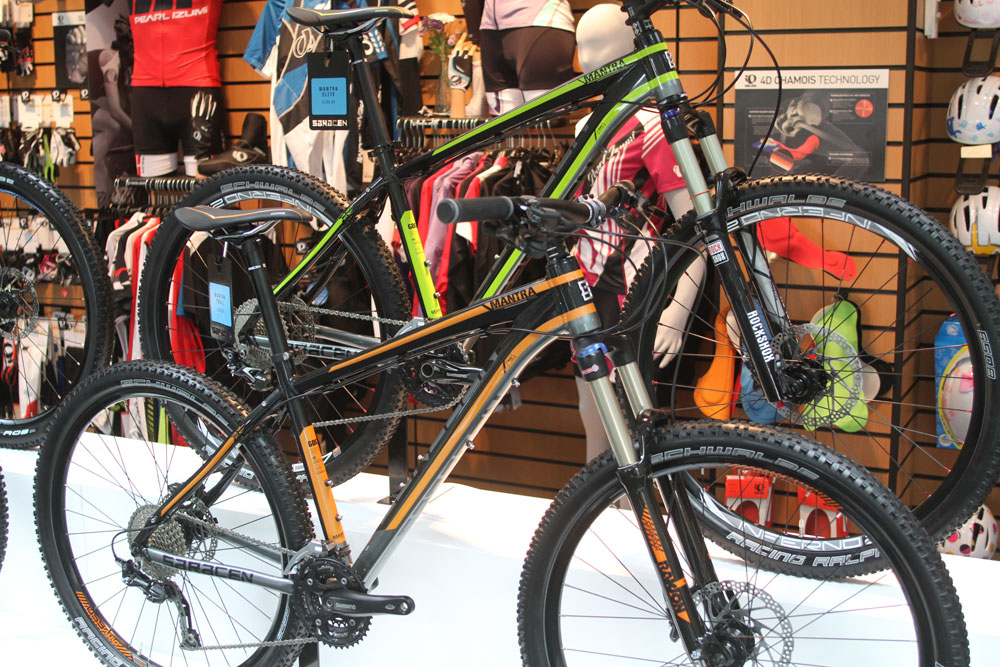 A little shorter on the travel is the Saracen Mantra line. These feature ‘UK specific design’ apparently. They come with 27.5in wheels like everything these days (apart from the Myst!). With 120mm forks, there’ll be a range of Mantras from £499-£1199